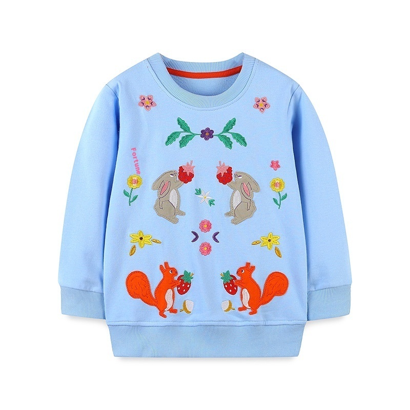 Spring And Autumn Small And Medium Children's Sweater European And American Style Baby Girl Knitted Cotton Cartoon Embroidered Pullover Mixed Batch