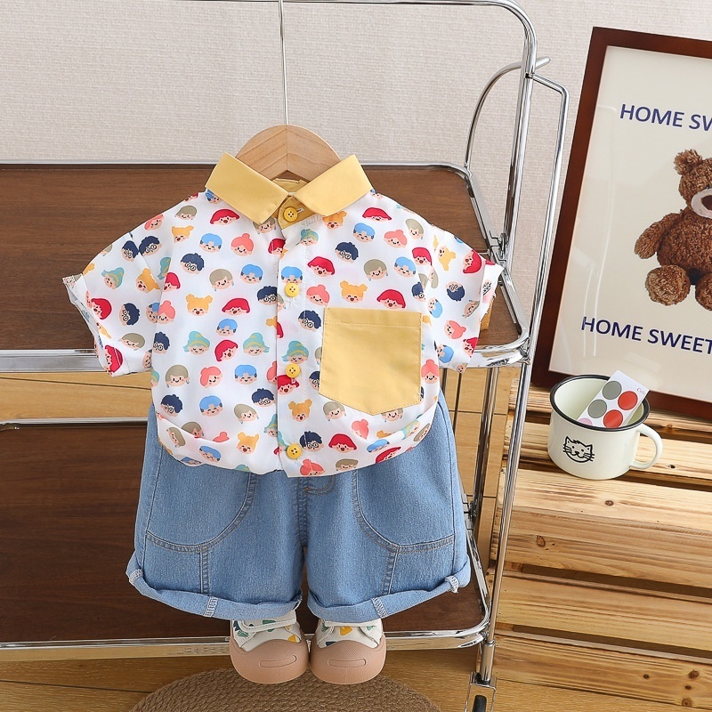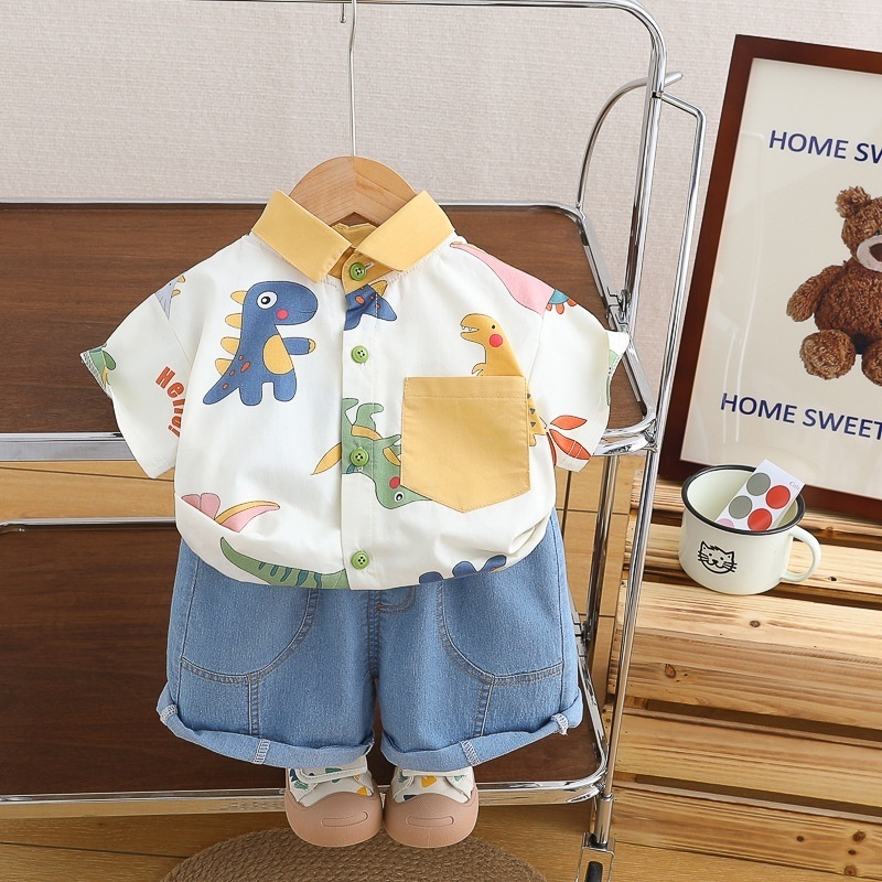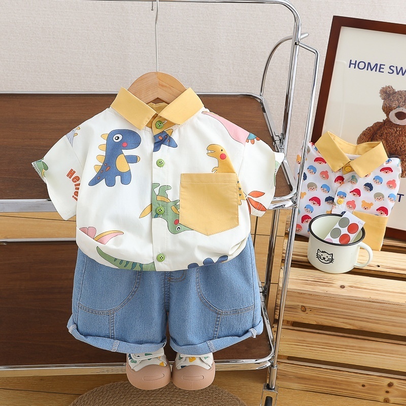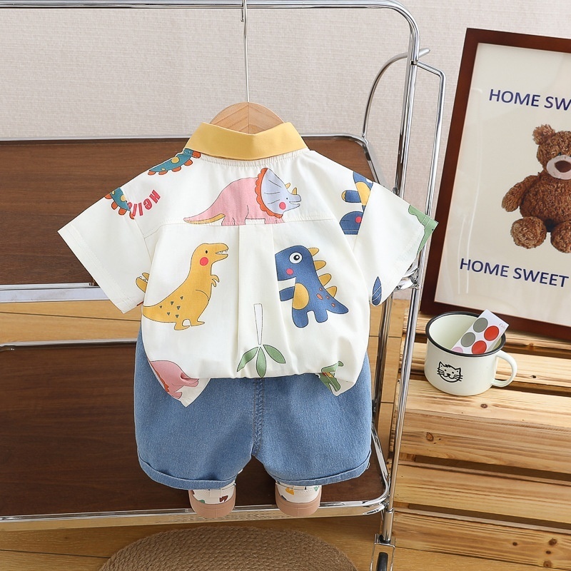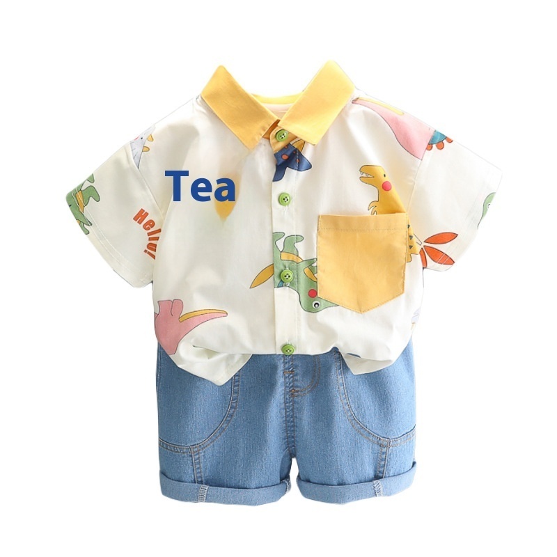 Boys Shirt Suit Summer2 Children Dinosaur Short-sleeved Shorts3 Girls Baby Casual Fresh2-piece Suity