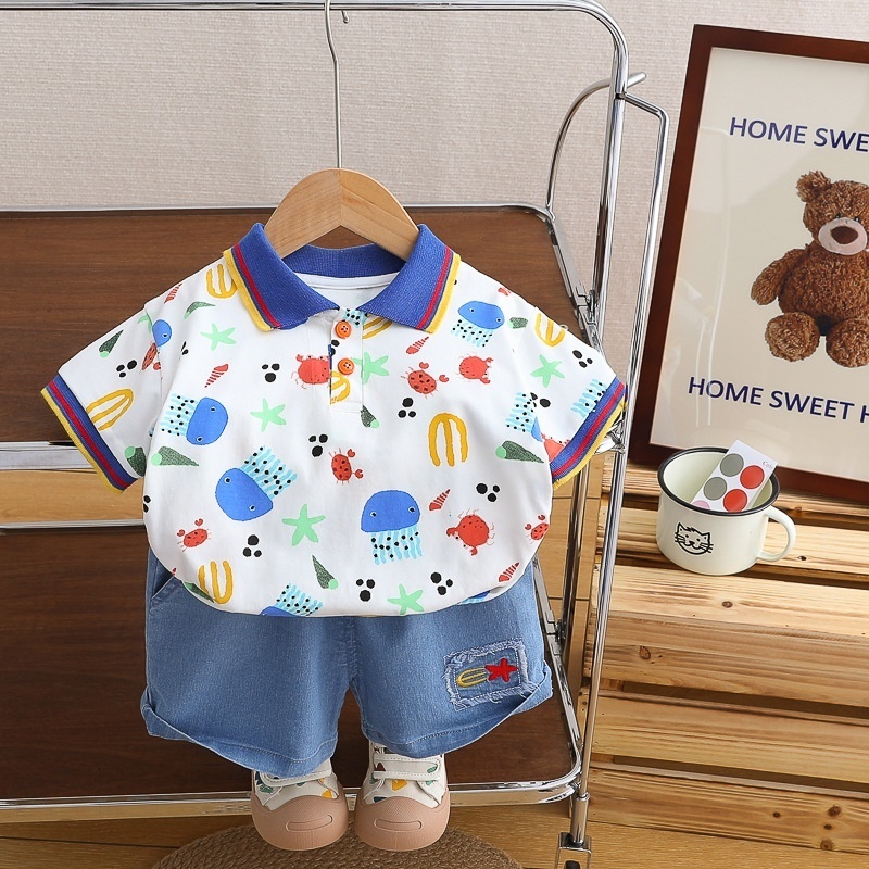 Boys Summer Suits Children's Short-sleeved Children's Clothing Korean Version Of T-shirts Summer Suits Stylish Polo Shirtsy