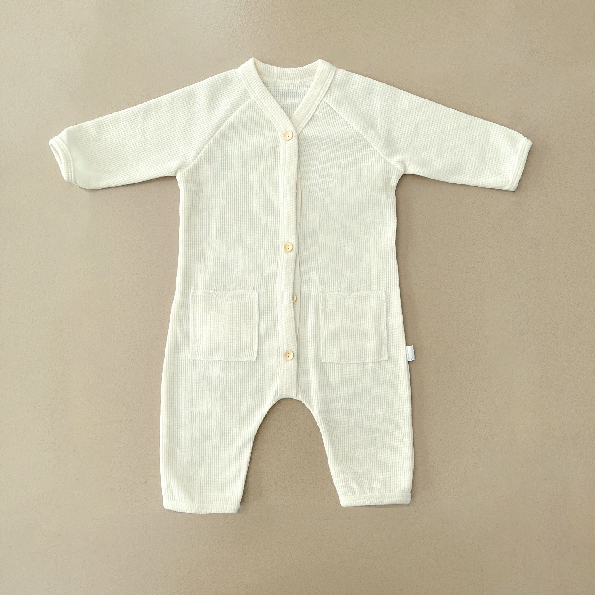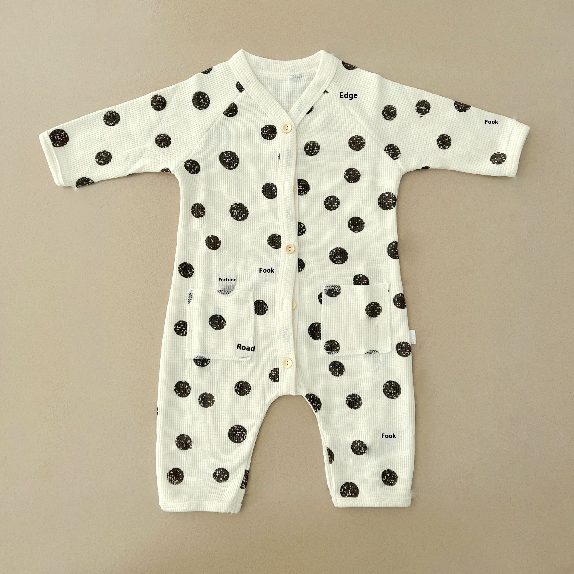 Infant And Toddler Clothes For Boys And Girls Baby Crawling Clothes Forborns In Spring And Autumn Waffle Long-sleeved One-piece Home Clothes With Fart Clothes
