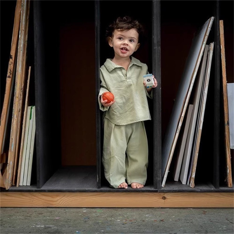 Nordic Style Children's Home Clothes Spring Forest Series Boys And Girls Long-sleeved Pure Cotton Lapel Shirt Casual Trousers Suit