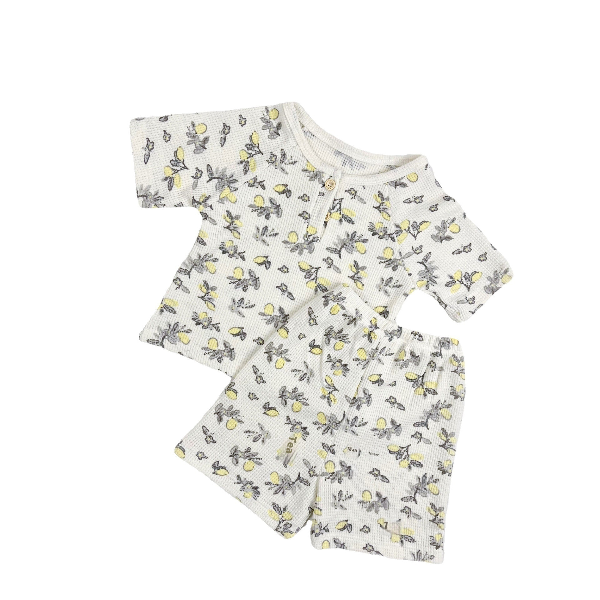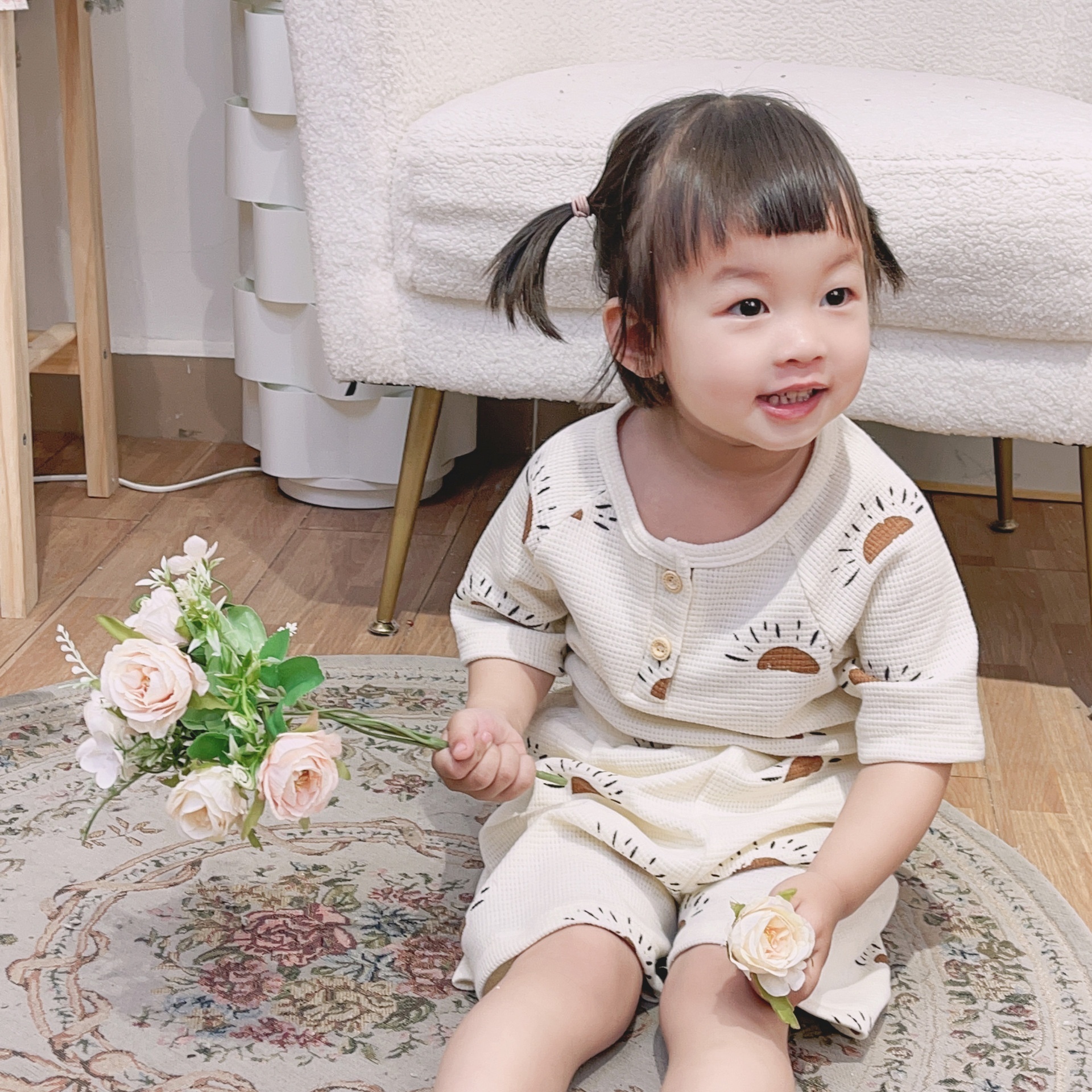 Waffle Children's Home Clothes Pajamas Danish Style Short-sleeved Tops Summer Boys And Girls Baby Home Clothes Suits