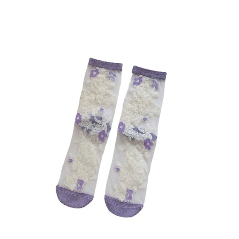 Spring Arrival Card Silk Socks Women Sweet Flower Series Ladies Pile Socks Transparent Thin Fashion Cotton Socks