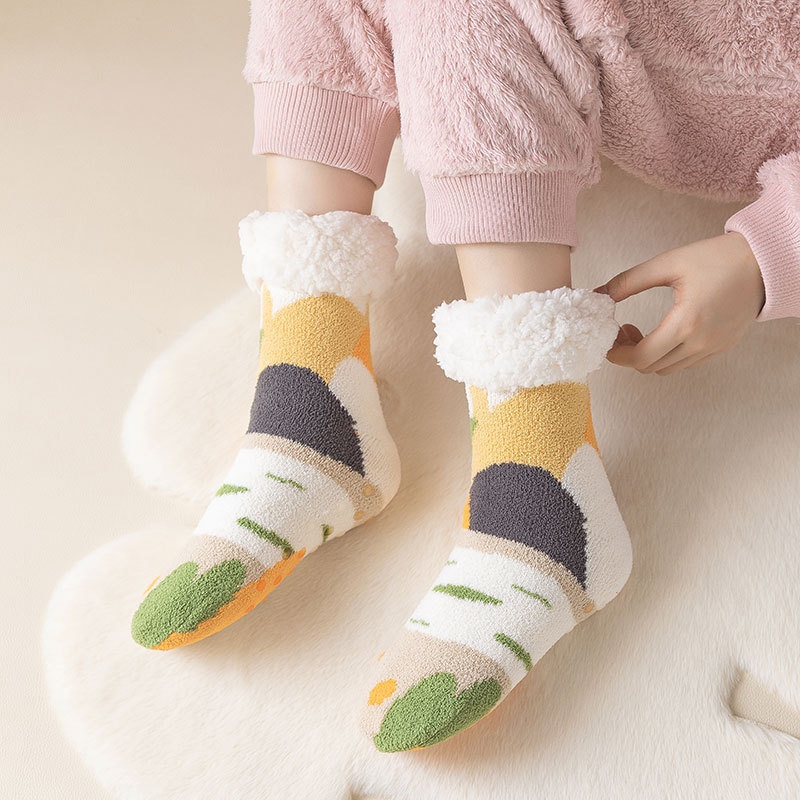 Lambskin Socks For Women Winter Thick Warm Home Sleep Socks Silicone Non-slip Floor Socks Mid-tube Women's Socks Antifreeze