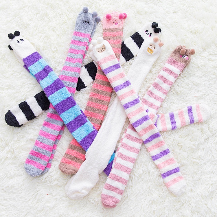 Winter Sleeping Socks Coral Fleece Socks Over Knee Warm Socks Striped Thick Long Socks