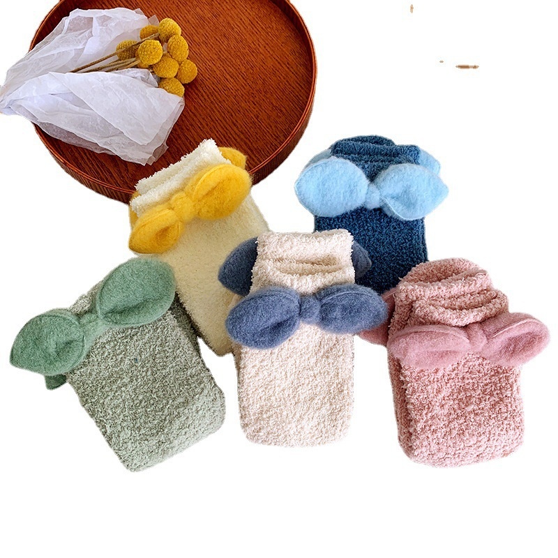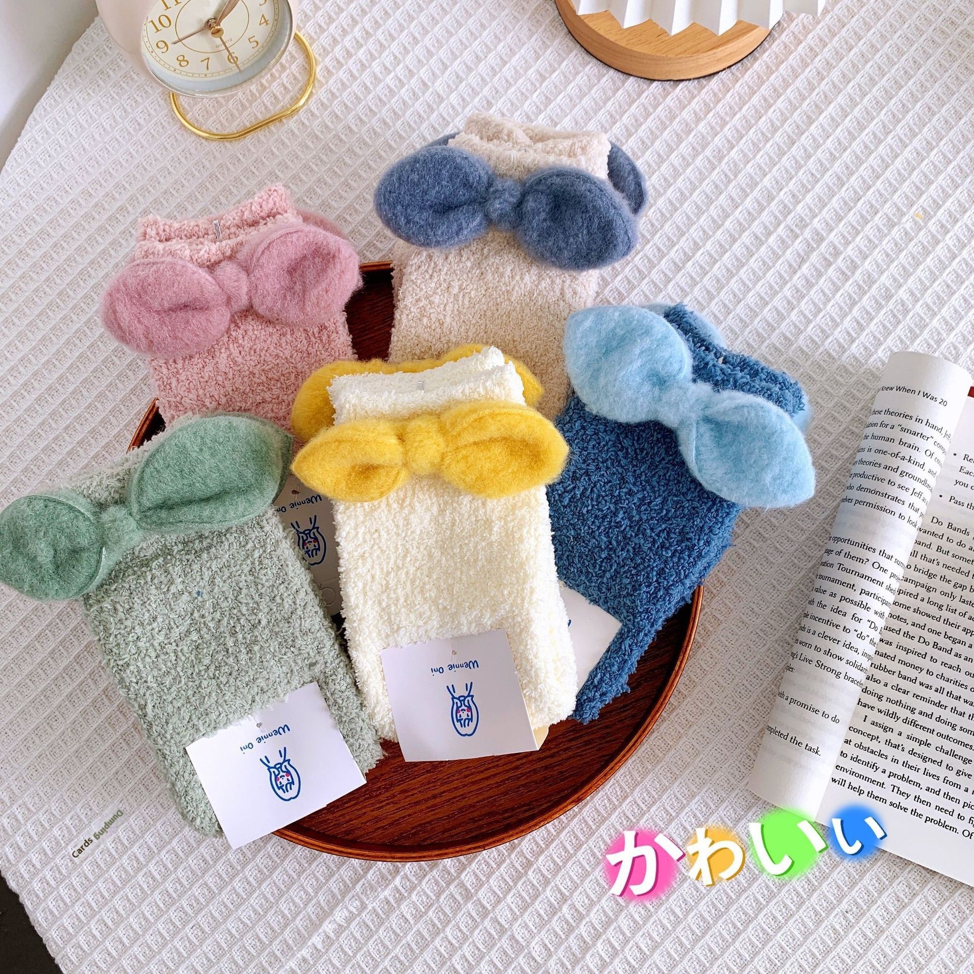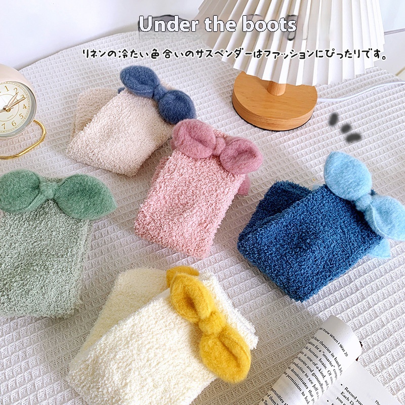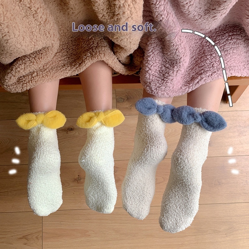 Autumn And Winter Thick Warm Coral Fleece Women's Socks Heel Bow Coral Fleece Socks Mid-tube Floor Home Socks