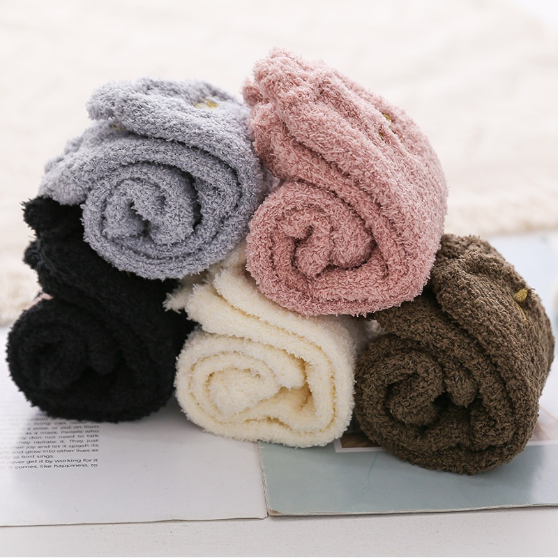 Autumn And Winter Coral Fleece Socks Women's Socks Winter Plus Velvet Thick Warm Sleeping Socks Embroidered Cat Claw Socks Floor Socks