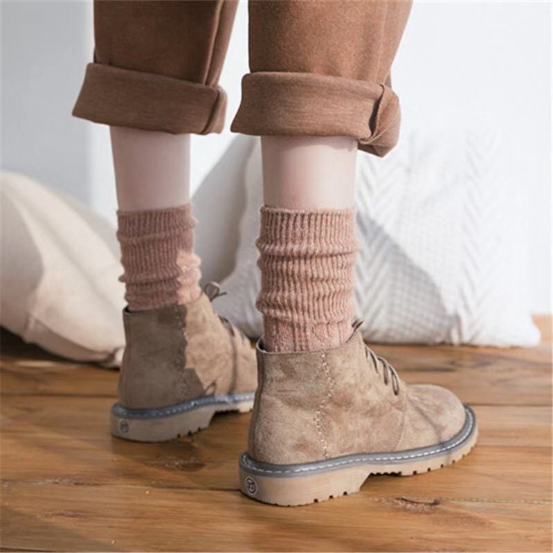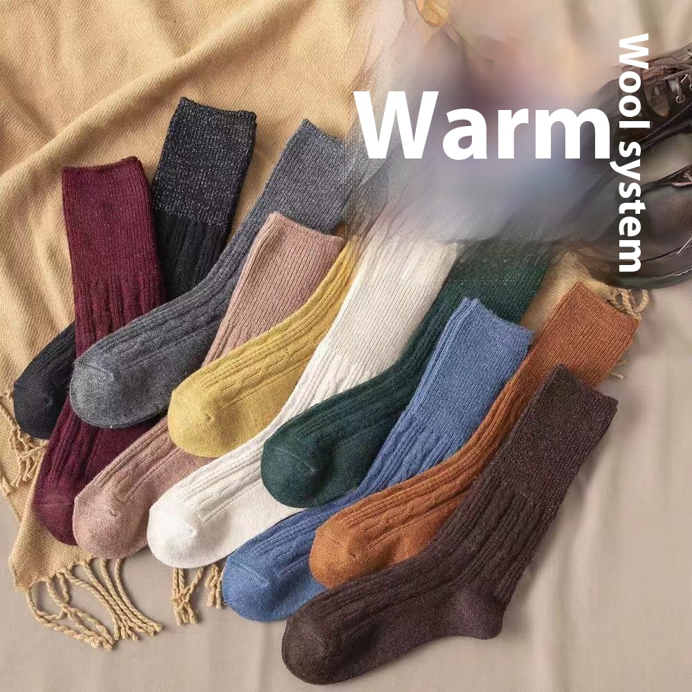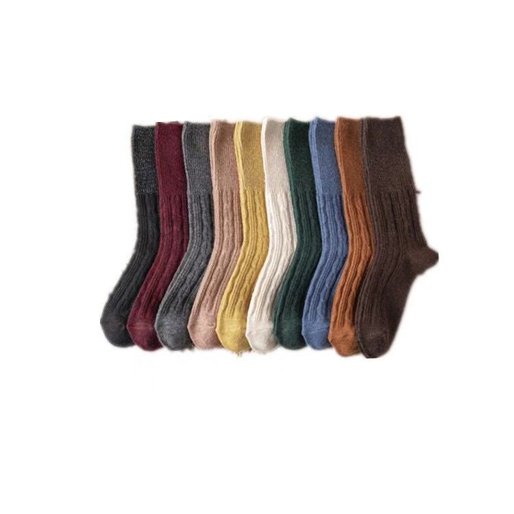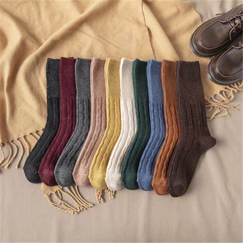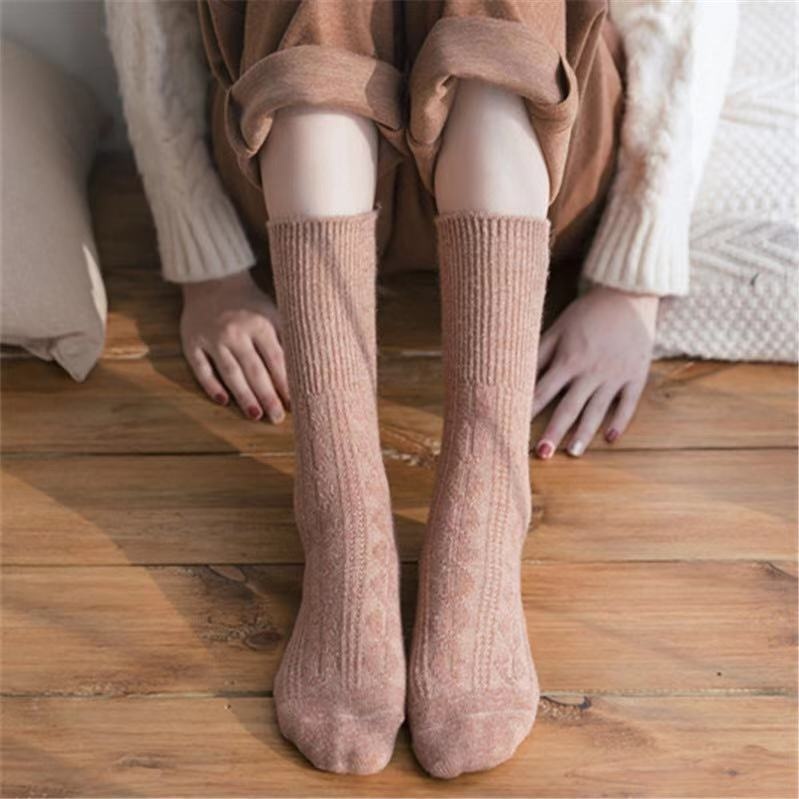 Wool Socks For Women Autumn And Winter Ladies Middle Tube Socks Japanese Style Hemp Pattern Long Socks Thickened Plus Velvet Warm Pile Socks