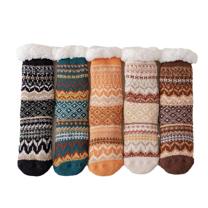 Lambskin Socks For Women Winter Thick Warm Home Sleep Socks Silicone Non-slip Floor Socks Mid-tube Women's Socks Antifreeze
