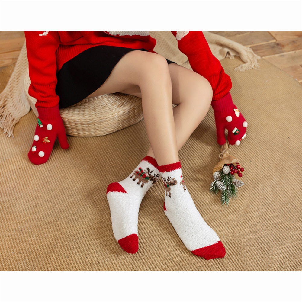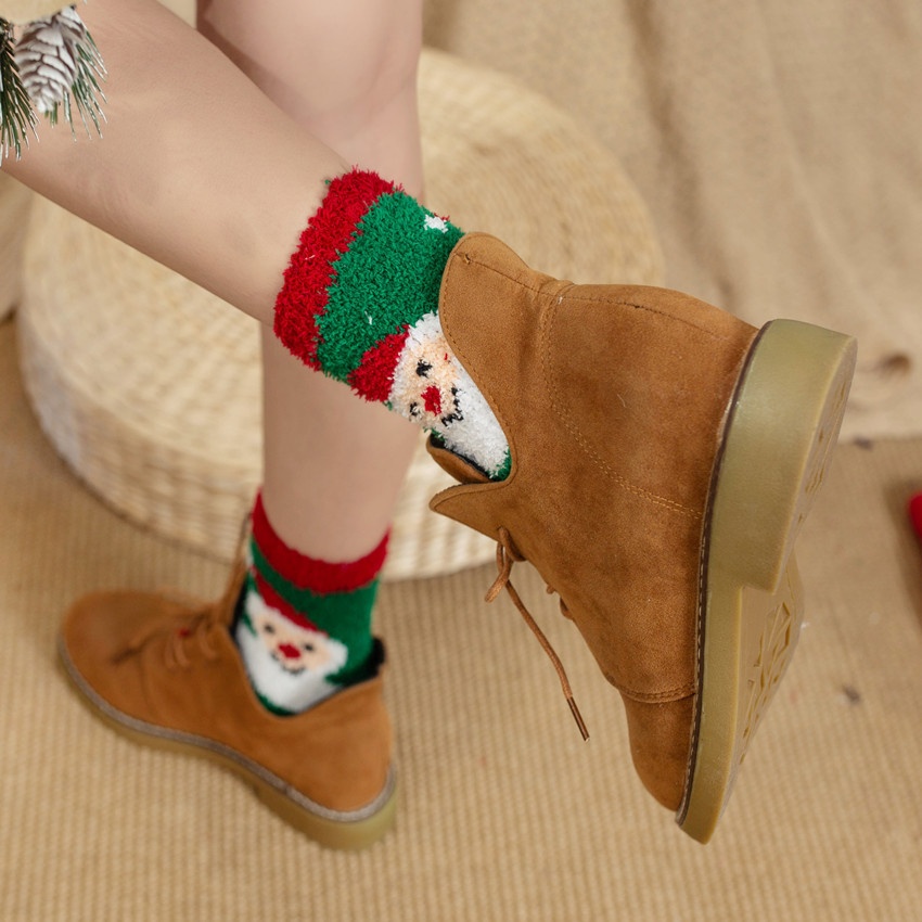 Christmas Socks For Women Coral Velvet Warm Thickened Half-velvet Old Man Elk Socks Christmas Snowflake