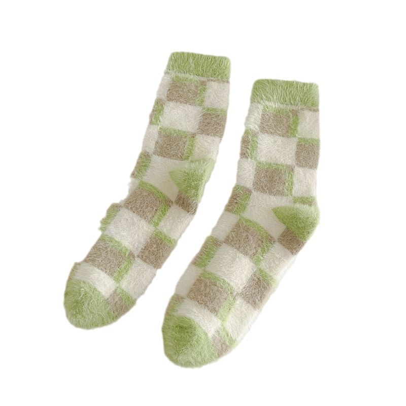 Autumn And Winter Fresh Green Mink Socks For Women Mid-tube Plus Velvet And Thick Fur Home Comfortable Confinement Socks