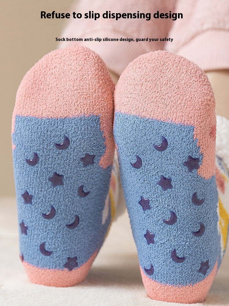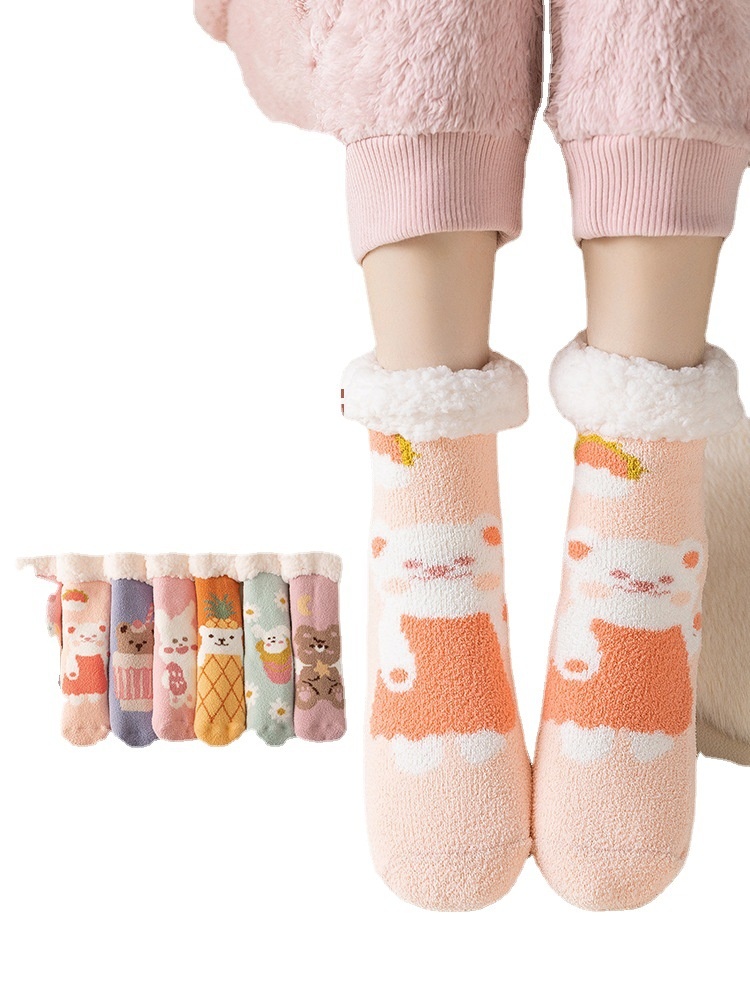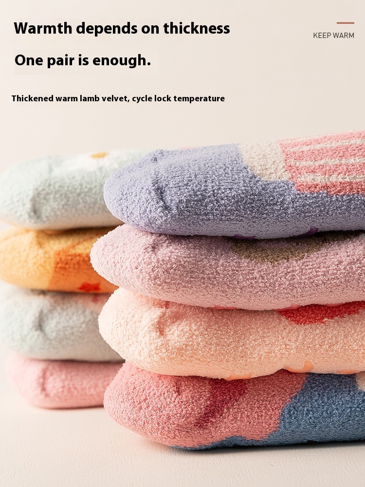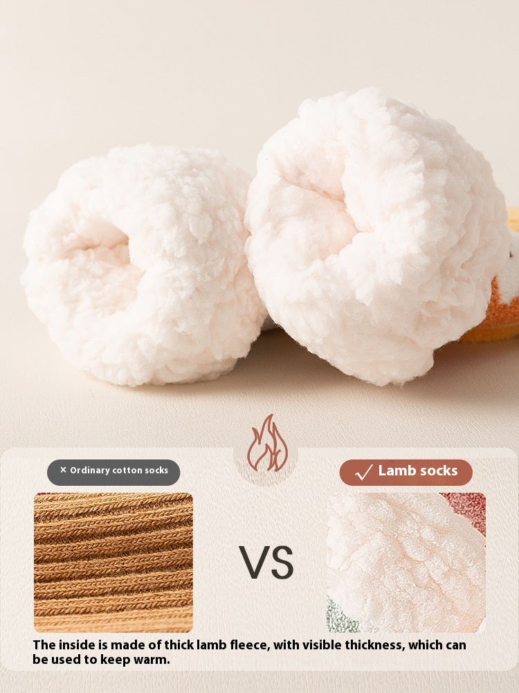 Floor Socks Women's Warm Foot Socks Autumn And Winter Style Plus Velvet Thick Warm Lambskin Home Coral Fleece Sleeping Confinement Socks