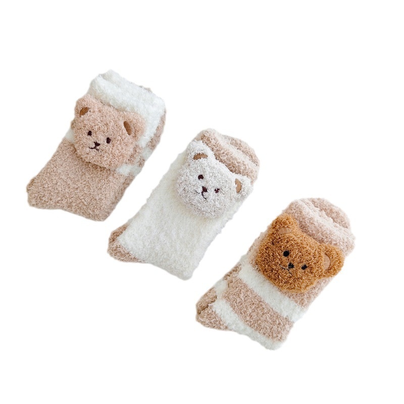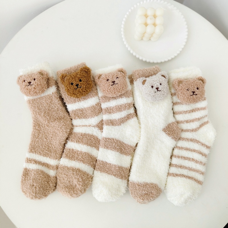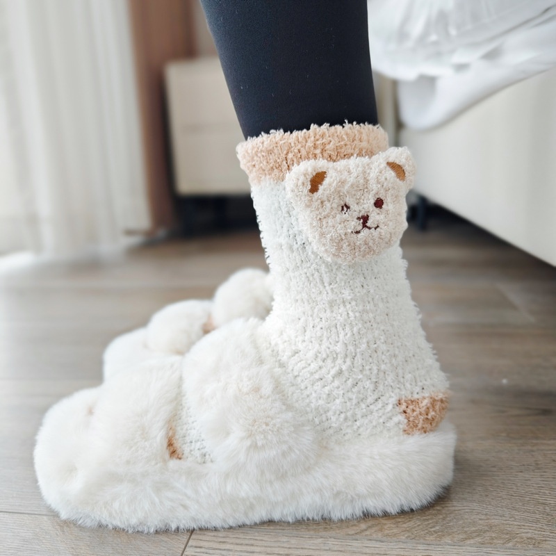 Coral Fleece Socks For Women Winter Thickened Non-shedding Home Sleeping Socks Bear Warm Mid-tube Floor Socks
