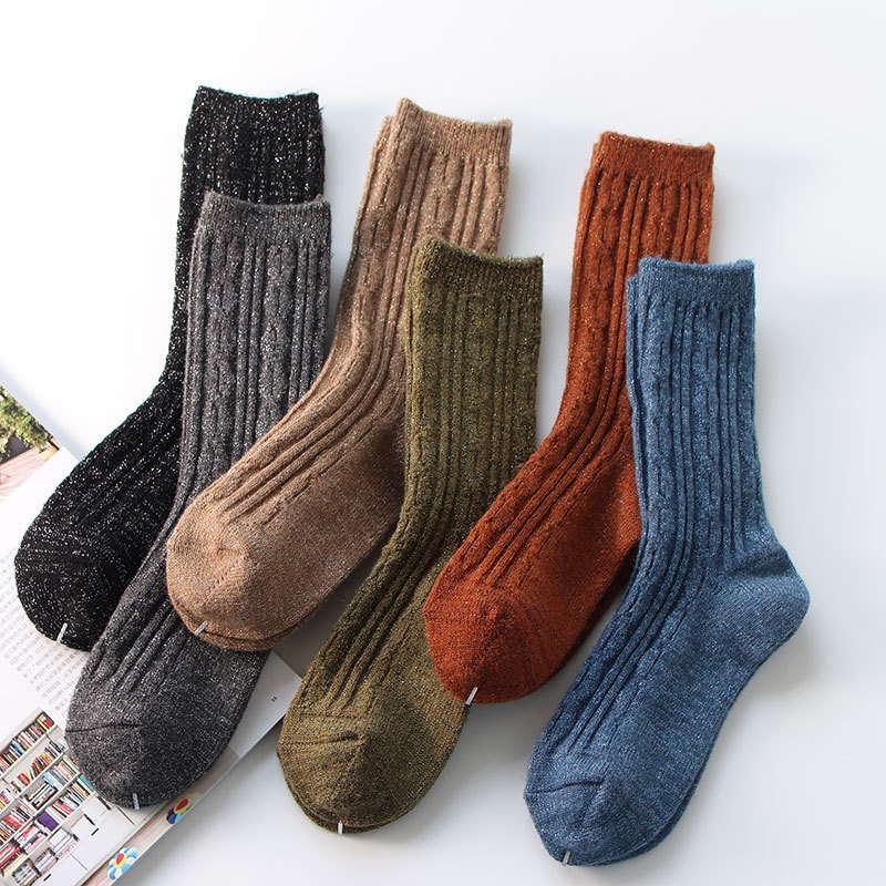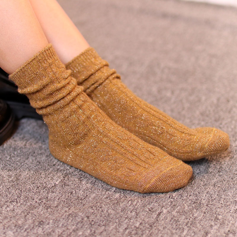 Dui Dui Socks Women Japanese Socks Solid Color Wool Socks Women Gold And Silver Silk Socks Women's Socks Winter