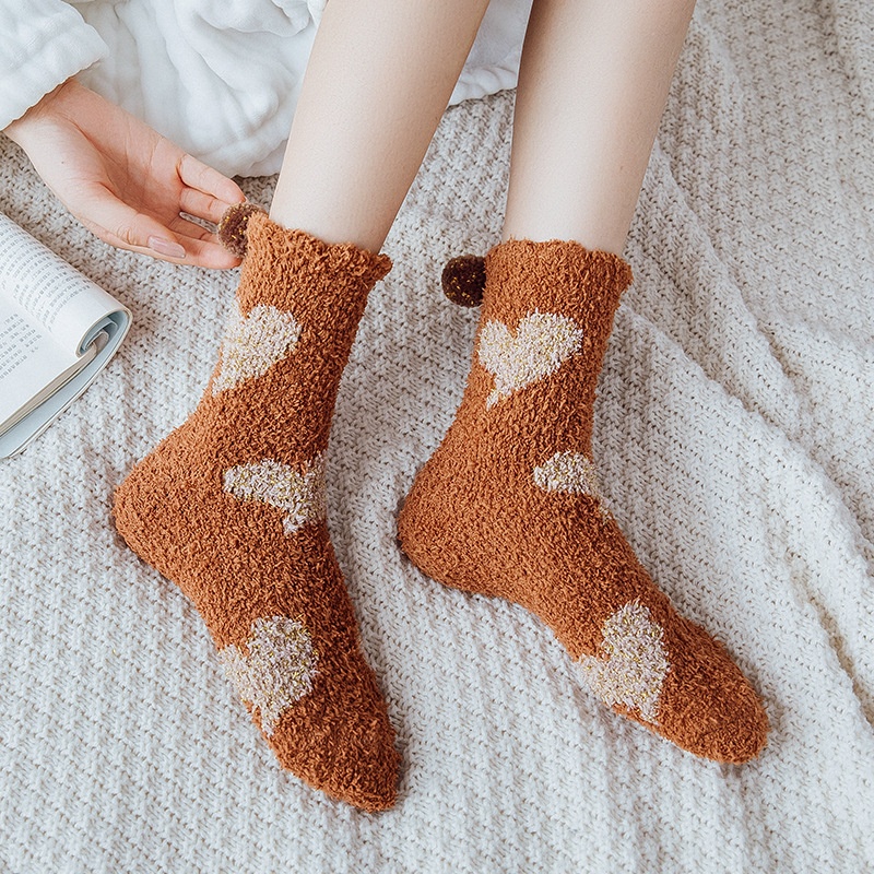 Autumn And Winter Socks Fashion Half-velvet Home Socks Coral Fleece Socks Thickened Ladies Floor Socks