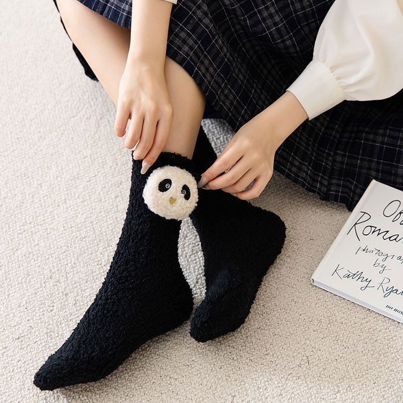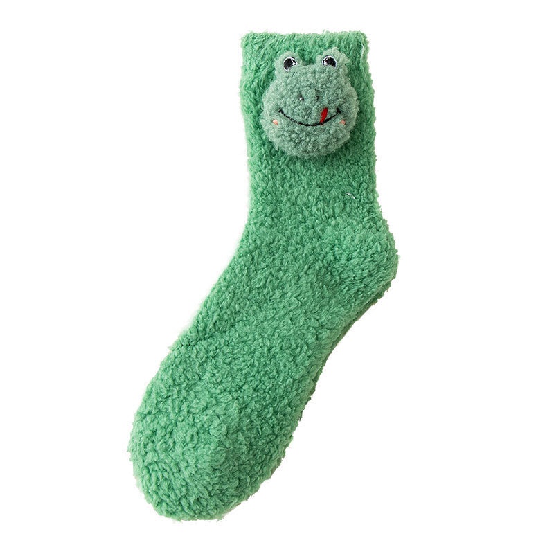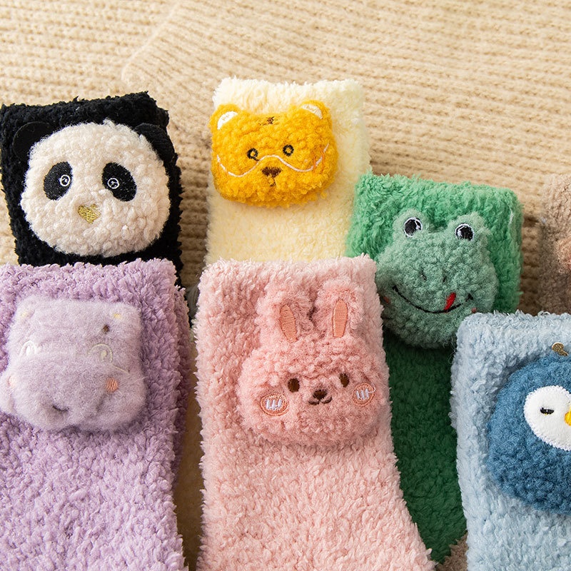 Women's Autumn And Winter Coral Fleece Socks For Confinement,Thickened And Velvet Floor Socks For Sleeping,Mid-tube,Cute Plush For Home Use,Postpartum