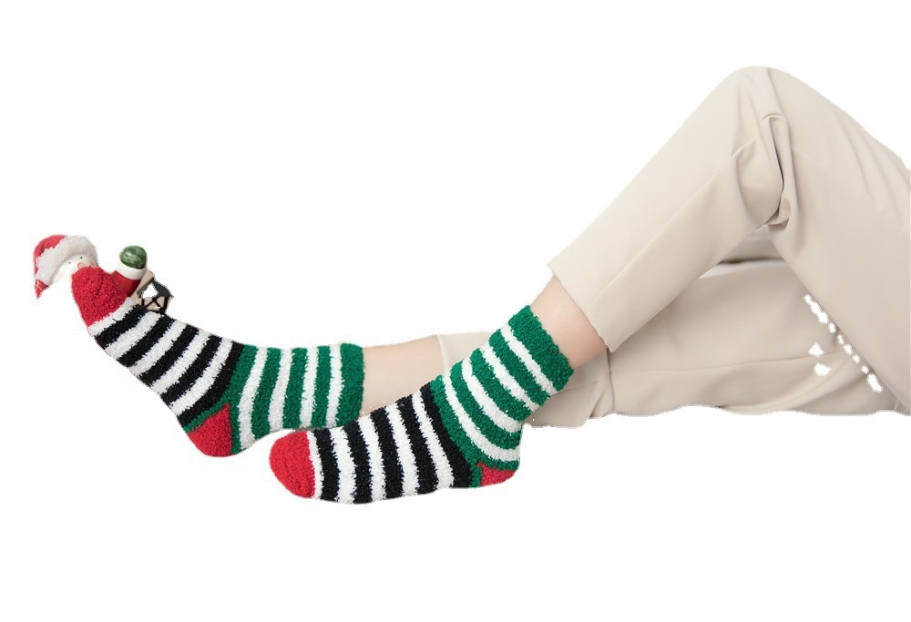 Socks Women's Elk Old Man Embroidered Letters Christmas Women's Socks Thick Coral Fleece Socks Floor Socks Christmas Socks