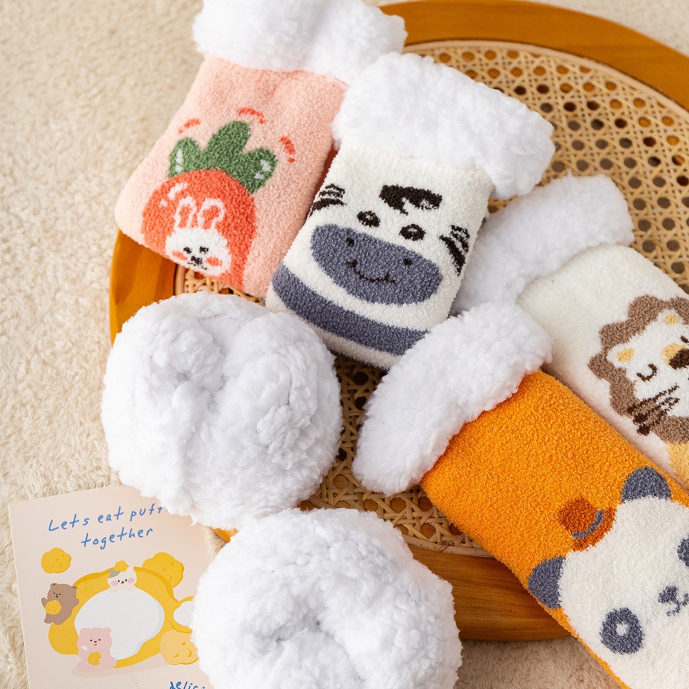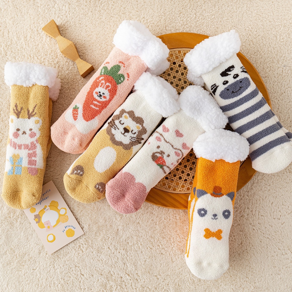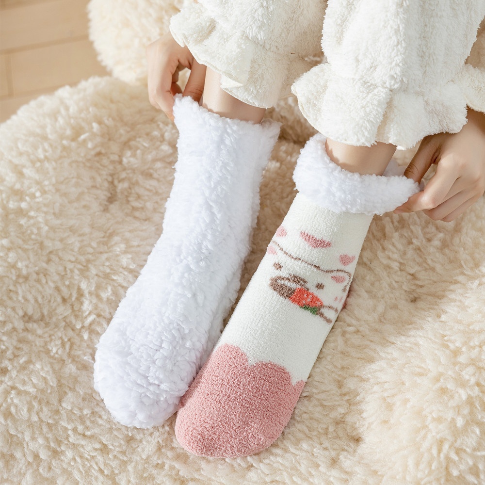 Coral Fleece Socks For Women Plus Velvet Thickening Cute Confinement Autumn And Winter Home Sleeping Non-slip Christmas Warm Floor Socks