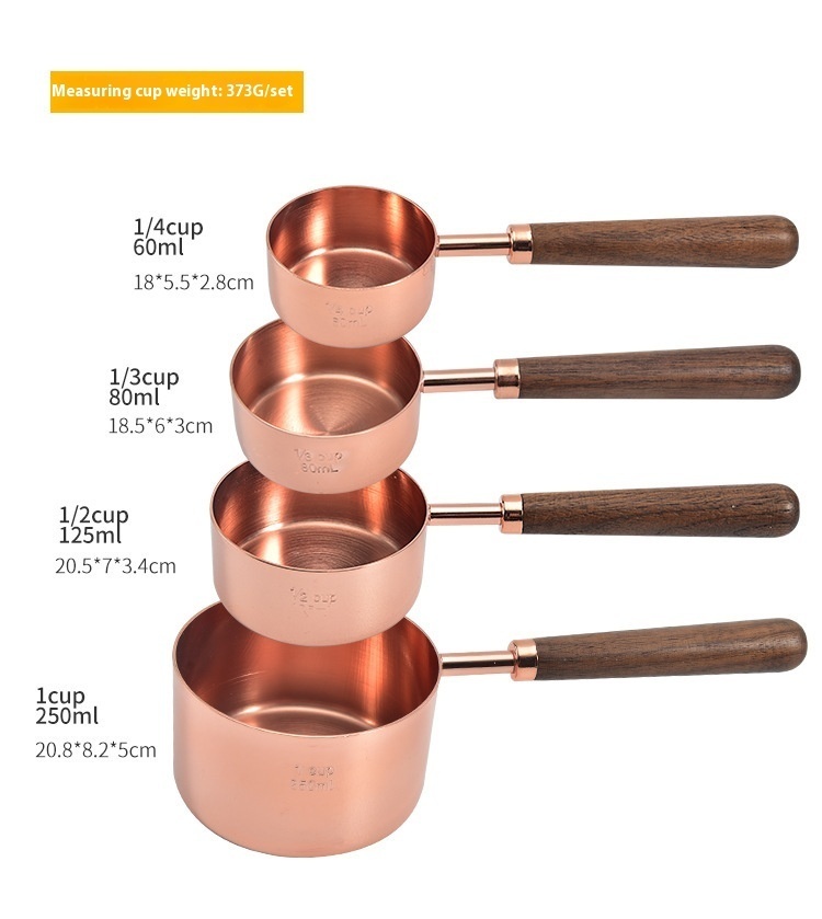 Walnut Handle Stainless Steel Measuring Cup Measuring Spoon With Scale Electroplated Rose Gold Eight-piece Measuring Spoon Measuring Spoon Set