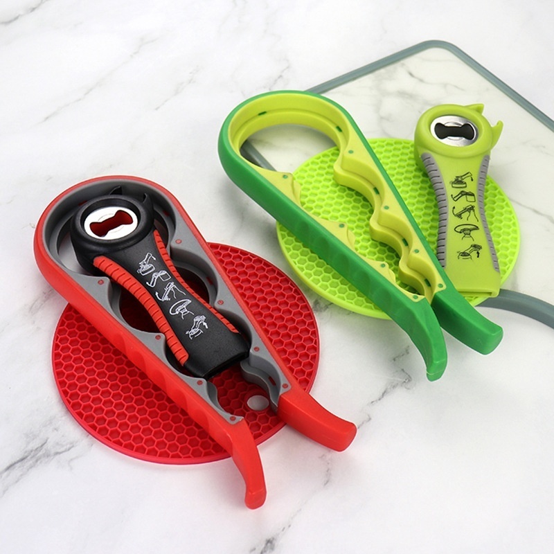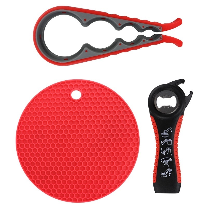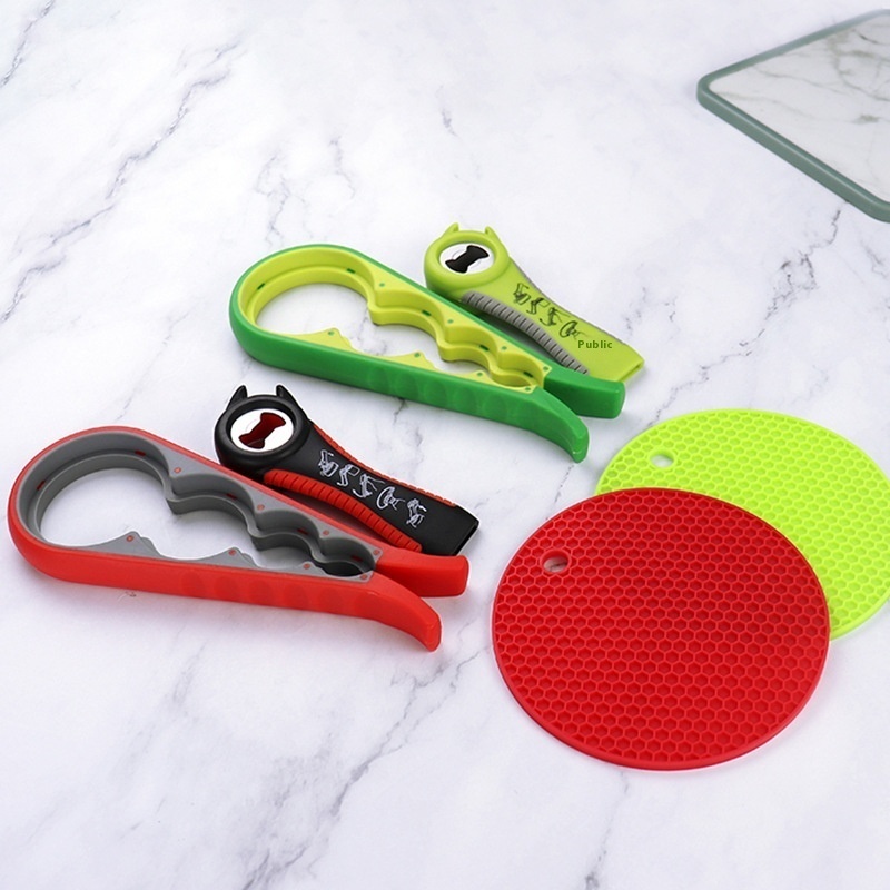 5 In1 Bottle Opener4 In1 Can Opener Silicone Heatulation Pad Plastic3 Piece Set Can Opener Bottle Opener Set