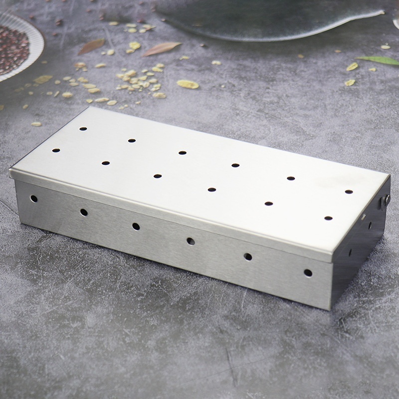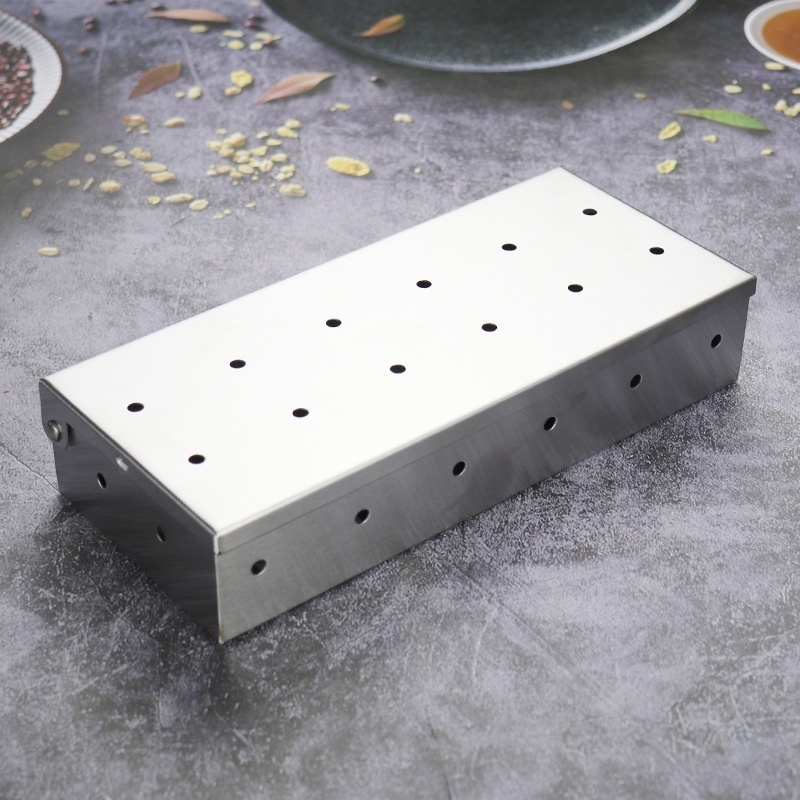 Outdoor Barbecue Smoker Box Litchi Wood Smoker Box Thick Stainless Steel Barbecue Tool Smoked Meat Box Carbon Box