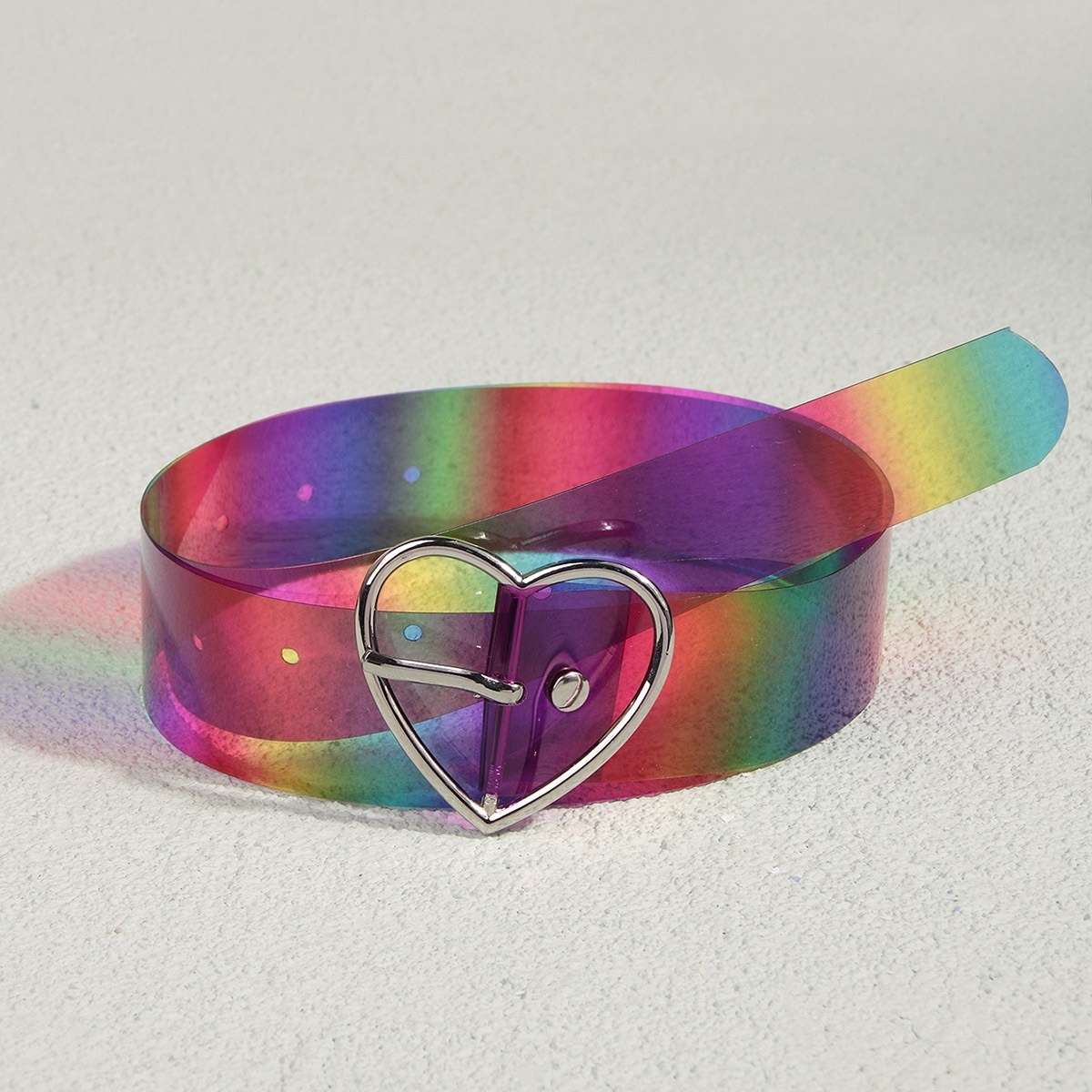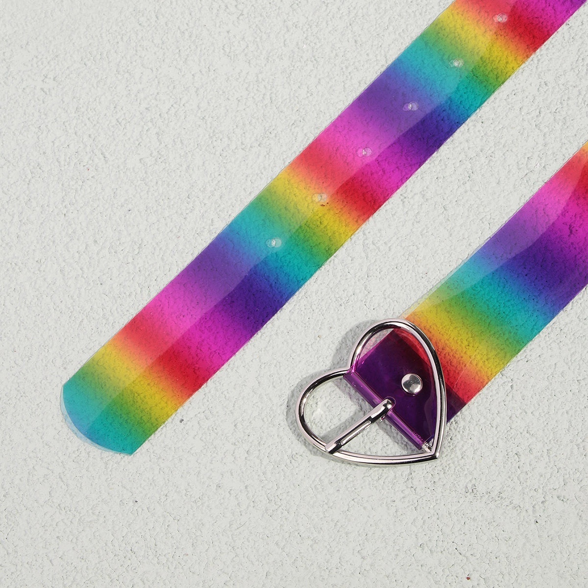 's Style Ladies'Rainbow Color Pvc Love Buckle Transparent Belt Fashionable Women One Piece Drop Shipping