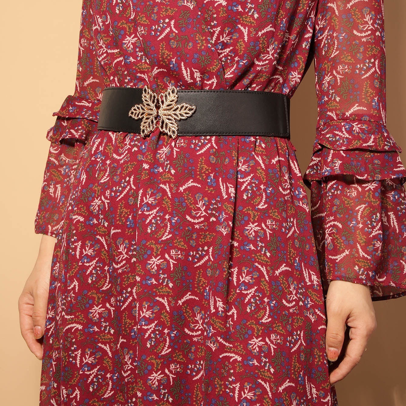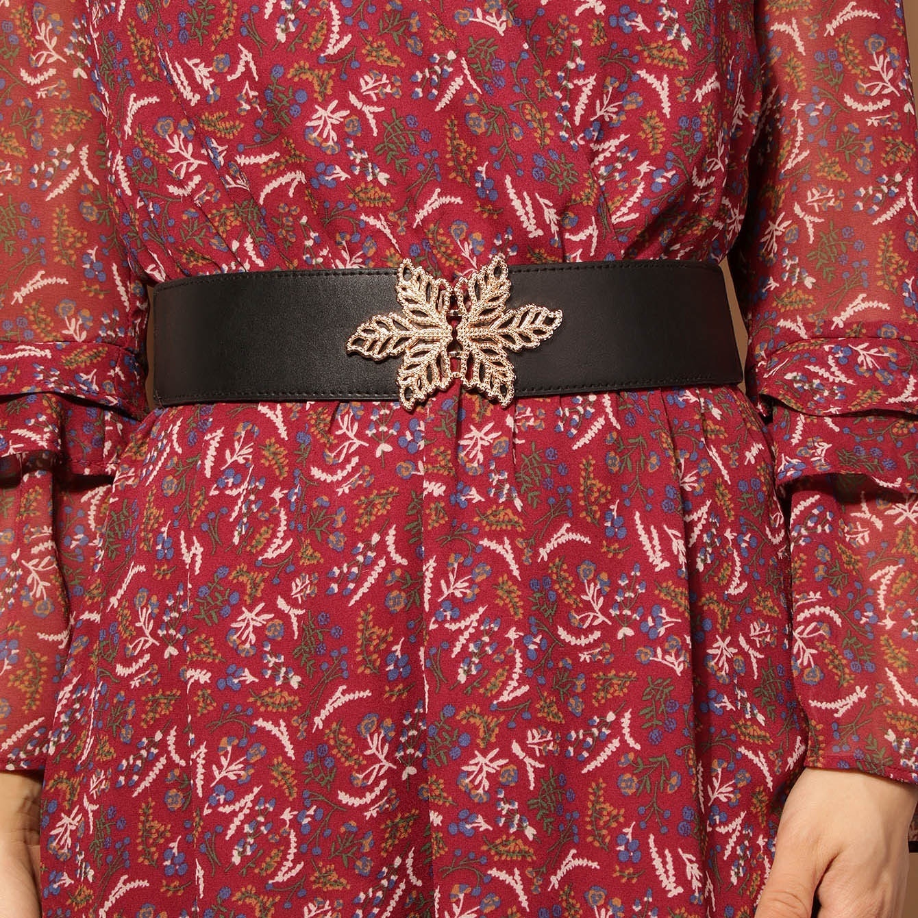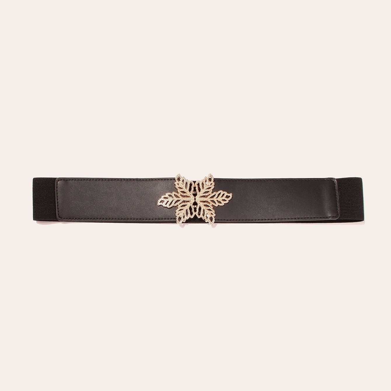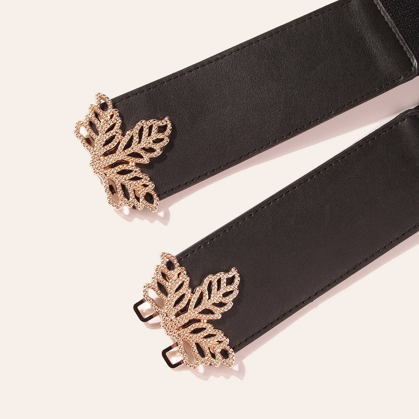 Style Women's Elastic Leaf Buckle Black Waist Seal Fashionable And Elegant