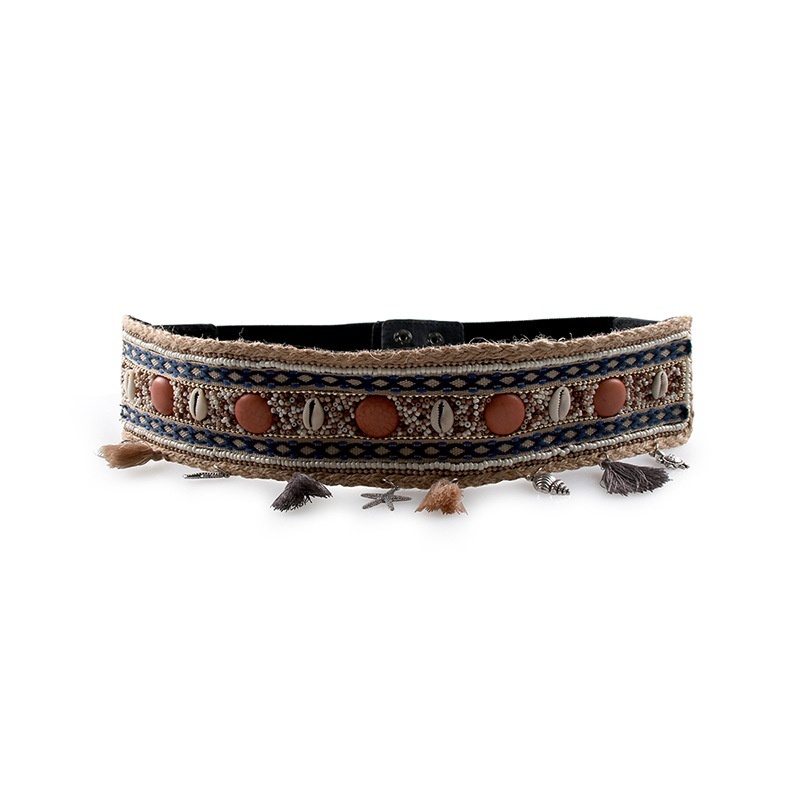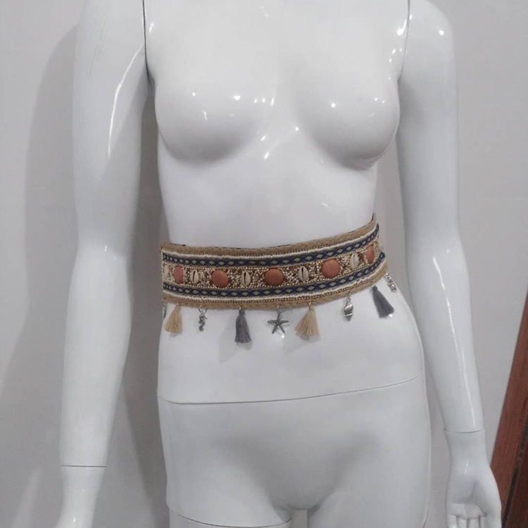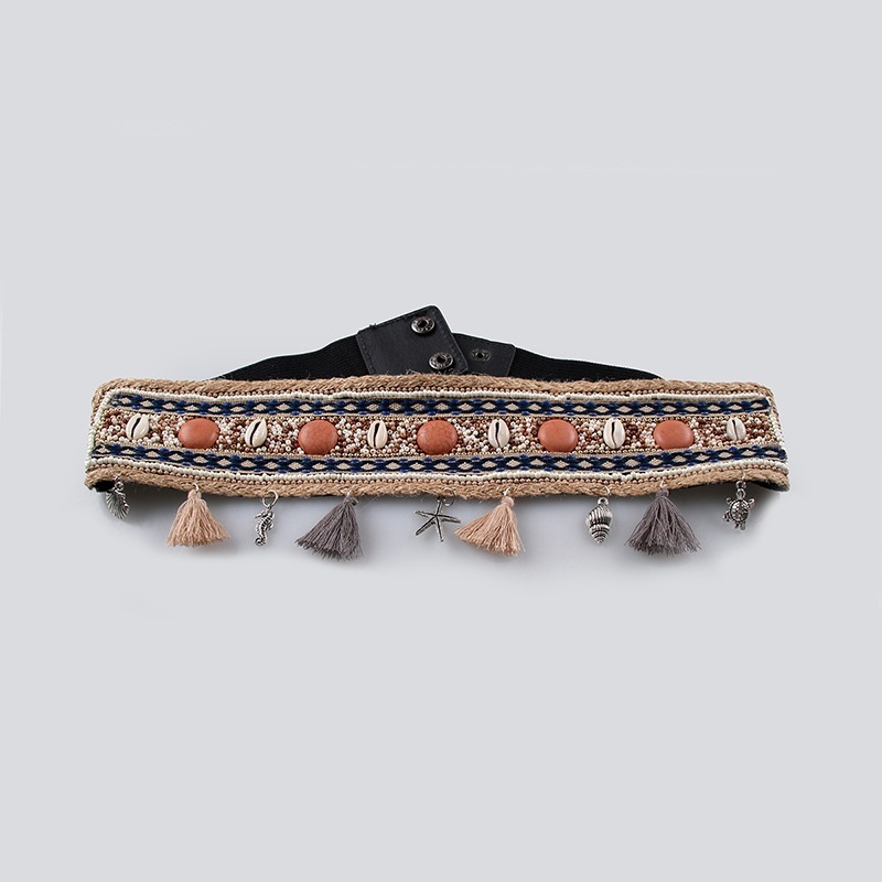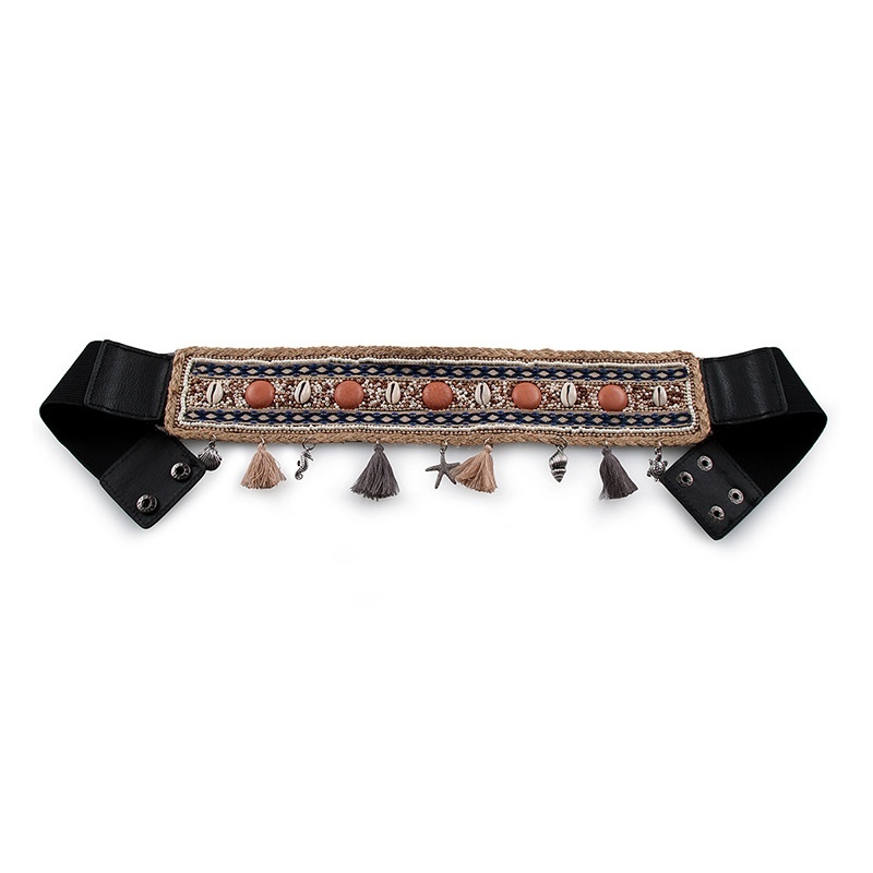 European And American Ladies Shell Neptune Pearl Elastic PPGrass Hemp Rope Elegant Belt