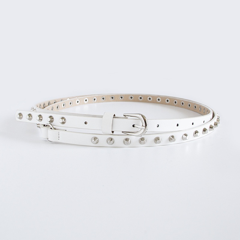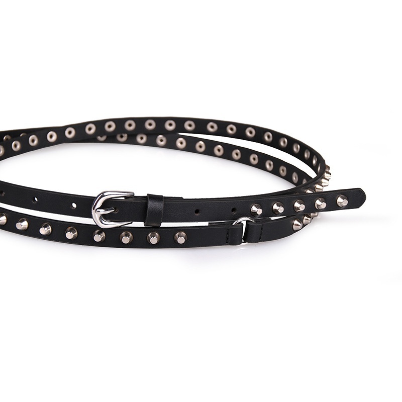 Style Women's Double Ring Versatile Casual Bucket Nail Thin Belt Rivet Super Long Punk Denim Classic Women's Belt Explosion