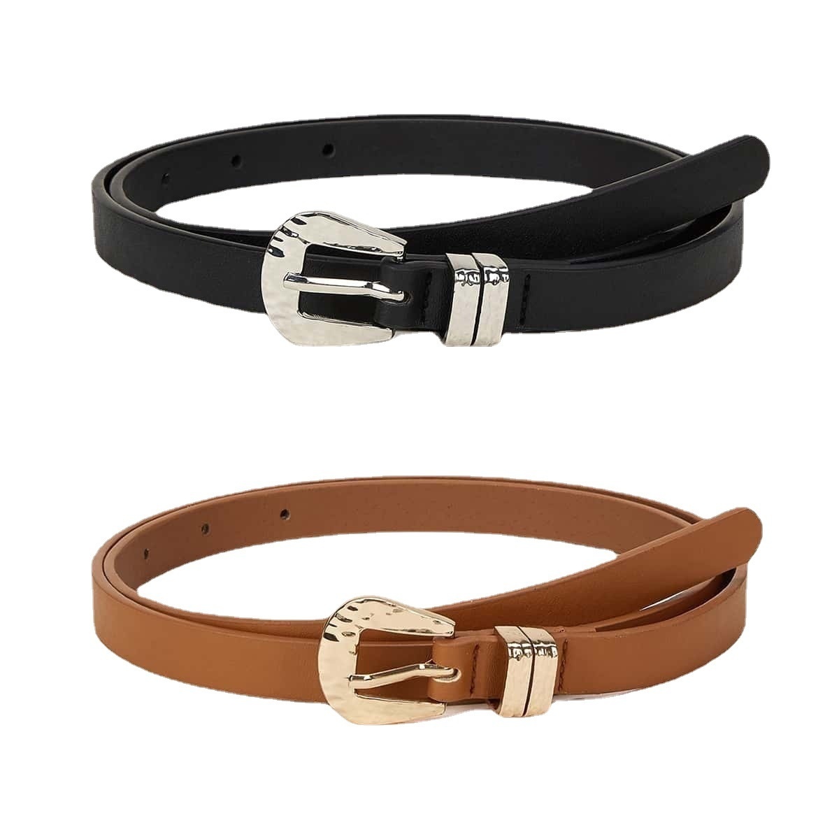 Women's Spring Convex Buckle Black Brown Simple Suit Belt Versatile Women2 Sets Of Clothing Belts
