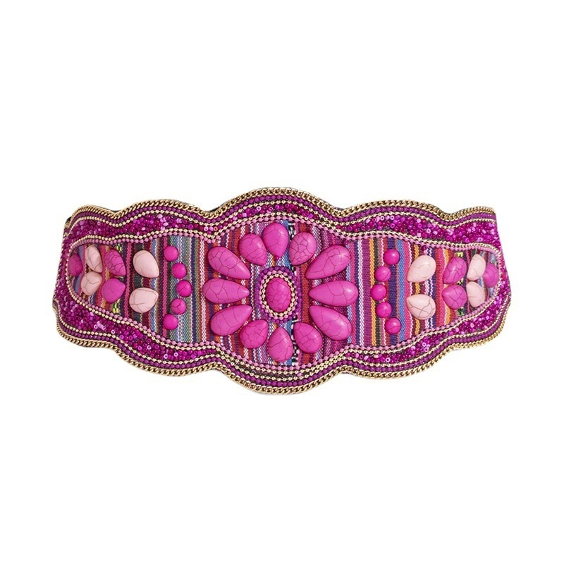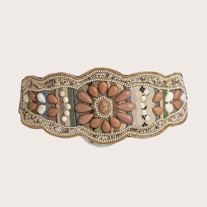 Women's Heavy-duty Bohemian Turquoise Handmade Beads Waist Seal Ethnic Style Yunnan Elastic Snap Buckle Belt