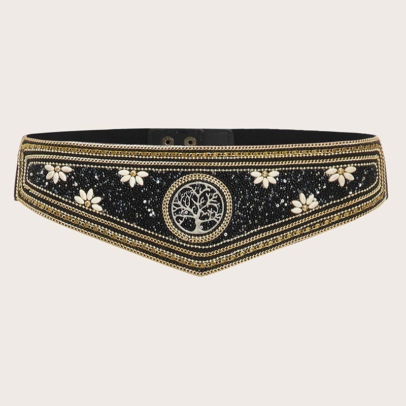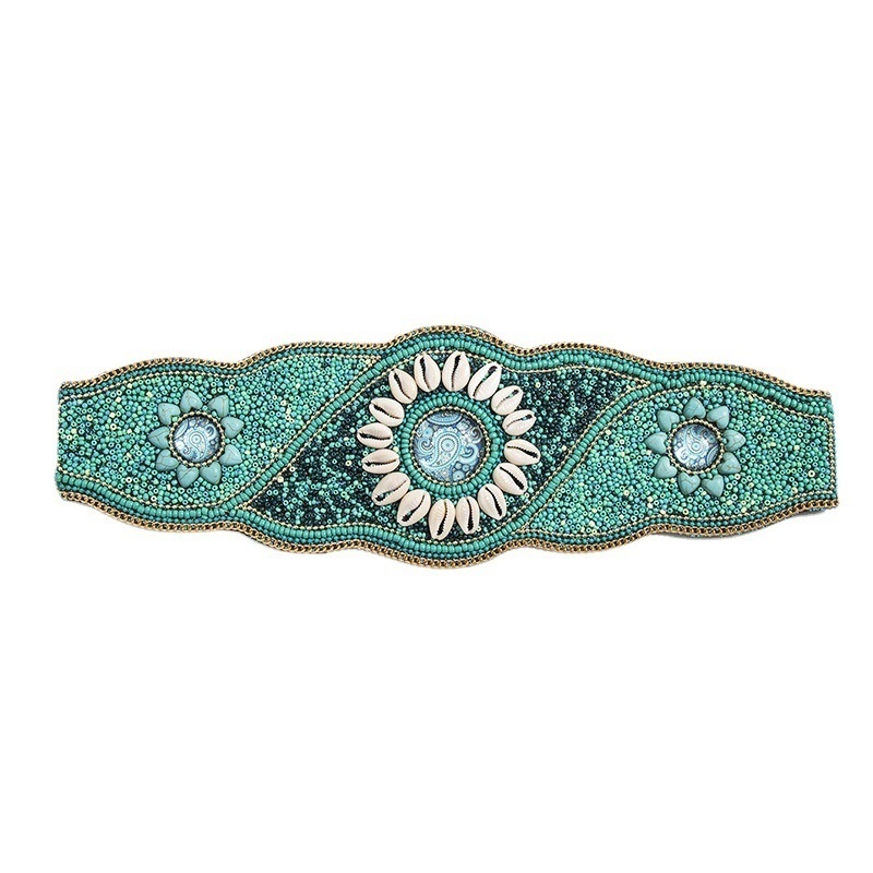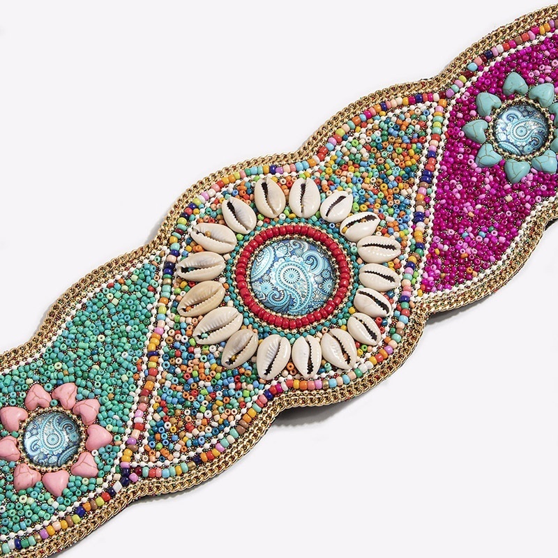 Women's Heavy-duty Bohemian Turquoise Handmade Shell Glass Bead Waist Seal Ethnic Style Travel Photography Elastic Snap