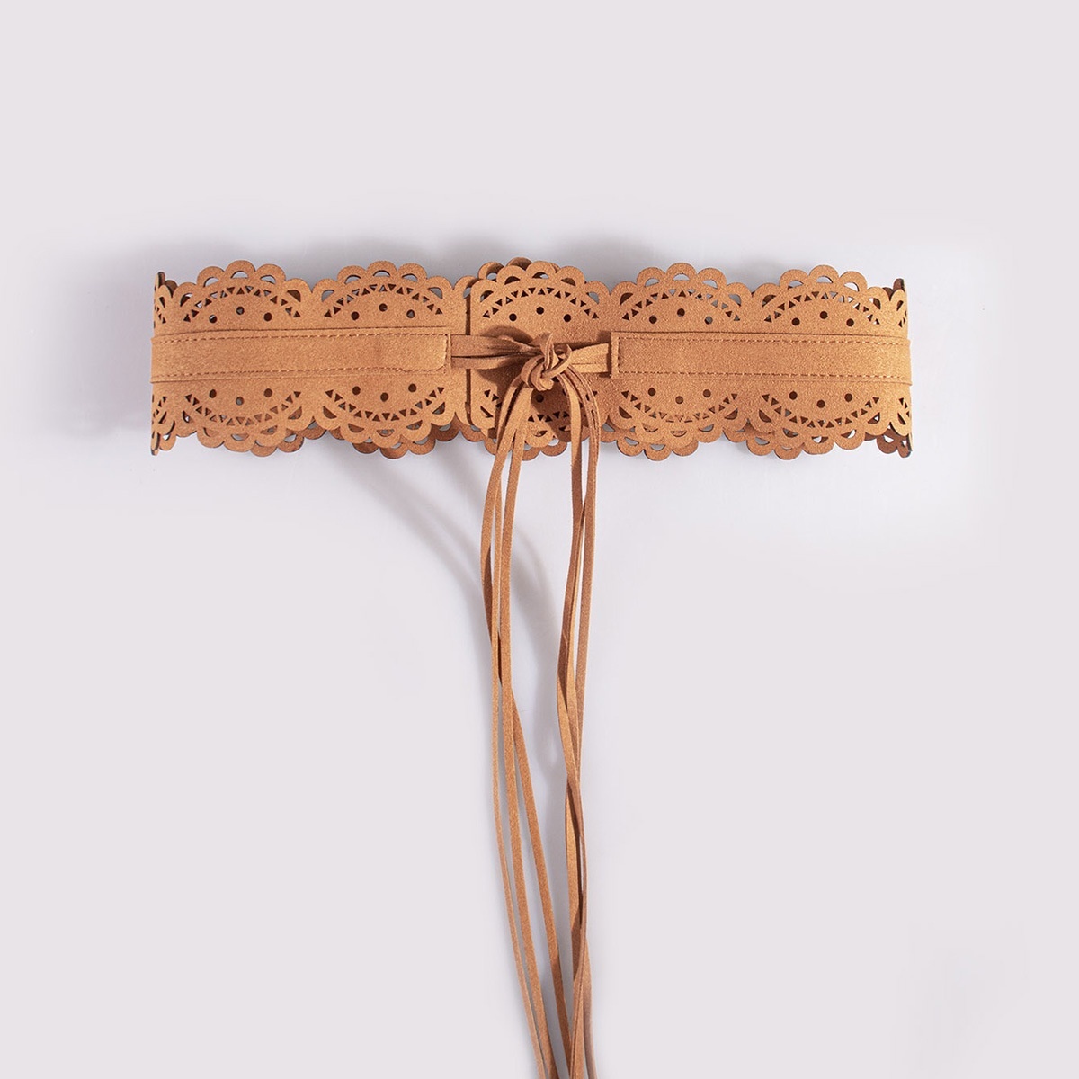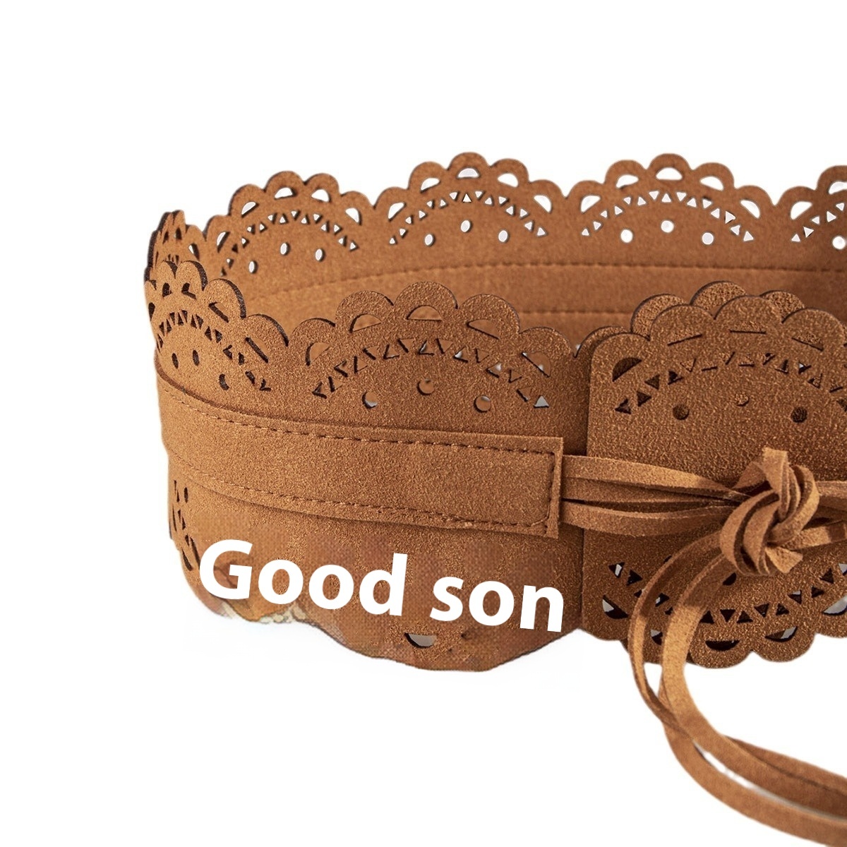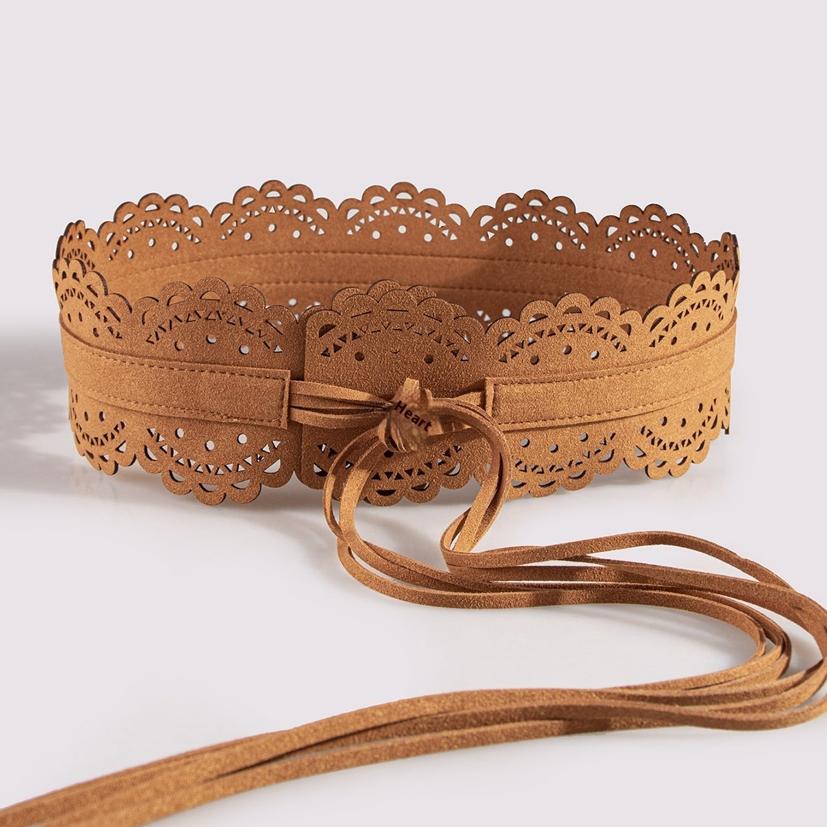 Korean Velvet Hollow Lace Belt Waist Seal Versatile Beautiful Women Natural Ethnic Style Wide Belt