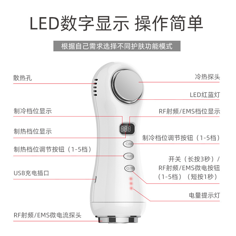 Home Radio Frequency Device E M S Color Light Skin Rejuvenation Facial Lifting Firming Vibration Massage Iontophoresis Beauty Device