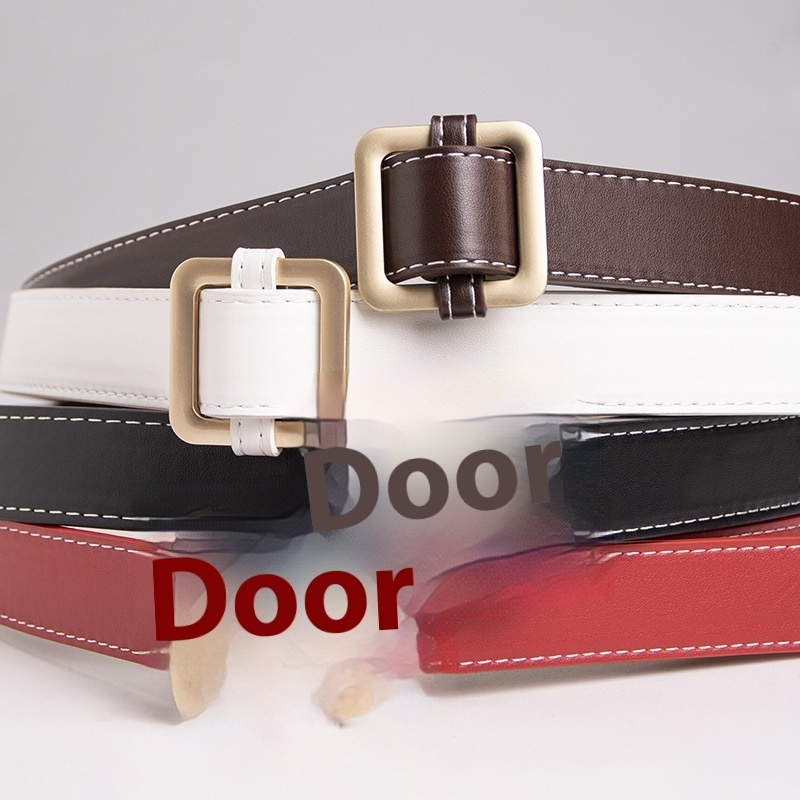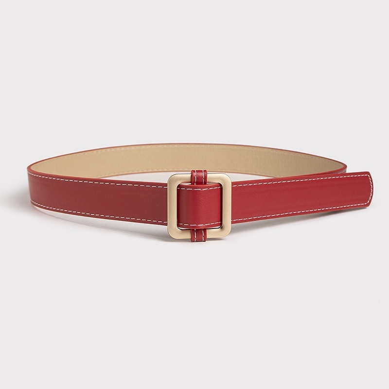 Women's Rose Gold Square Buckle Day Buckle Black Belt Versatile Basic Thick Line Texture Women's Belt