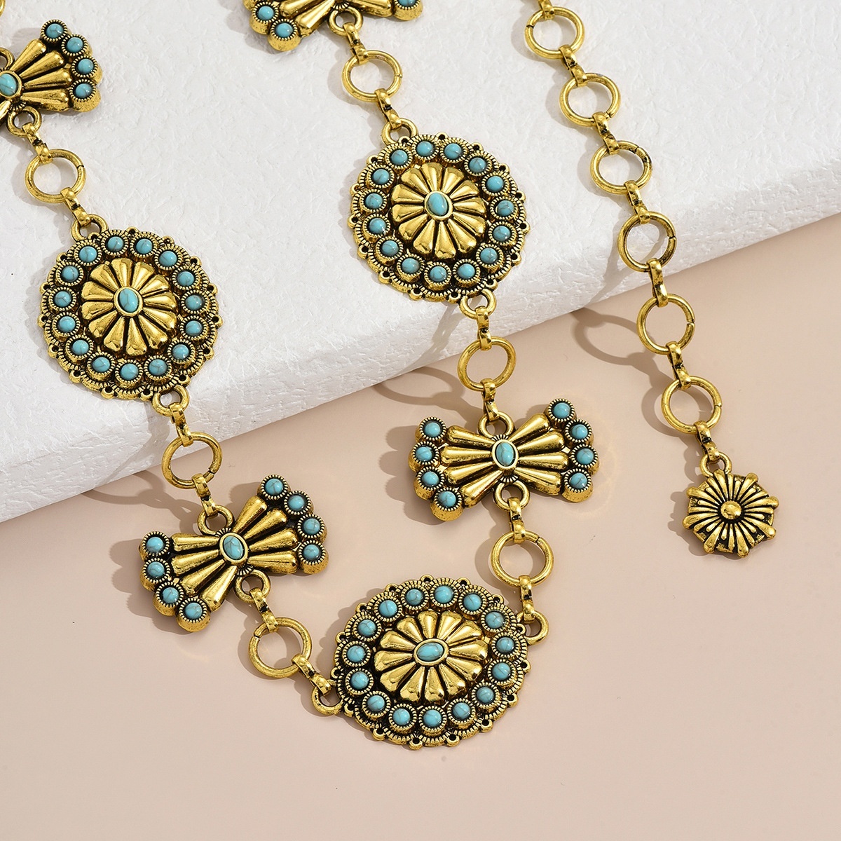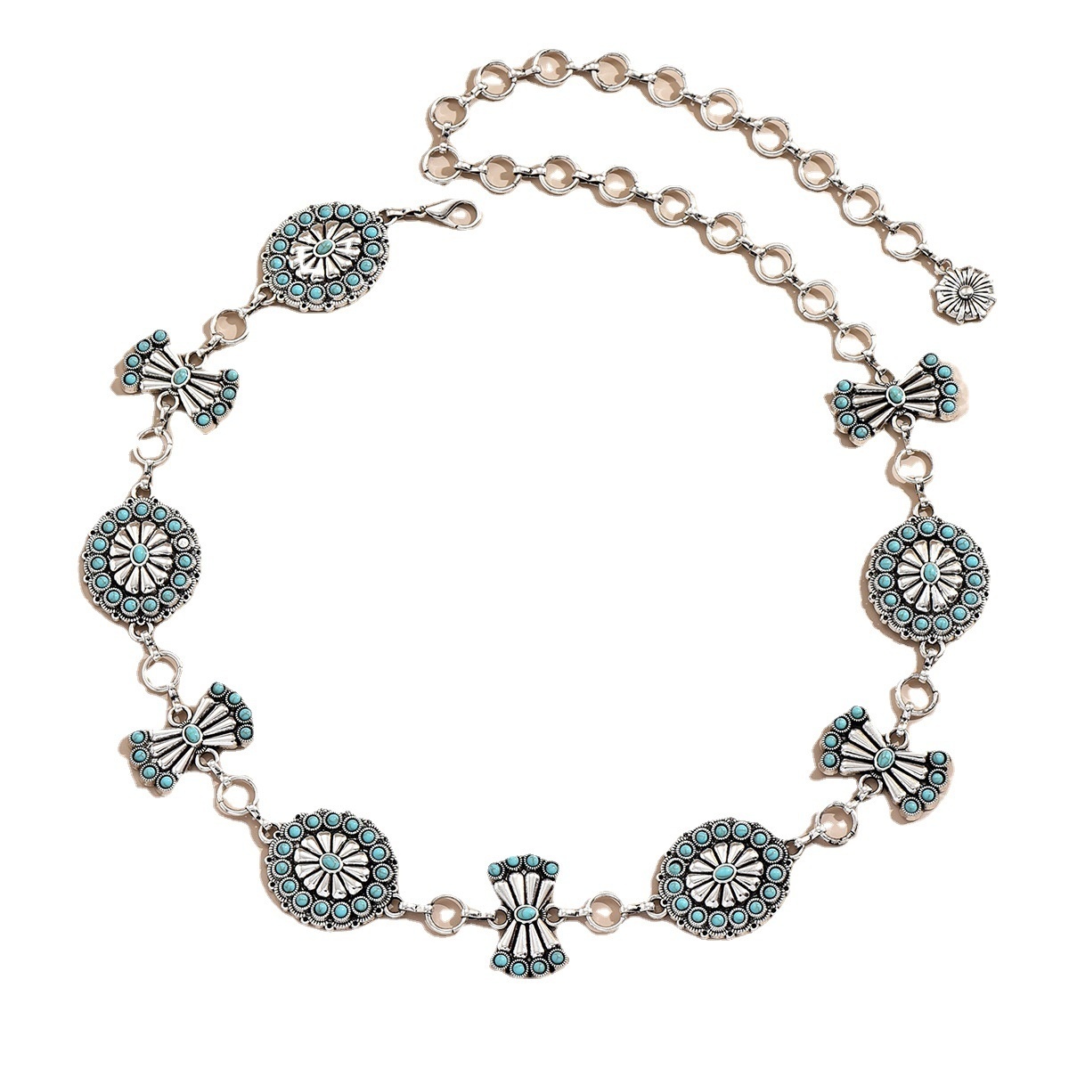 Women's Exquisite Heavy Turquoise Inlaid Fashionable Palace Style Heavy Metal Waist Chain Elegant Belt