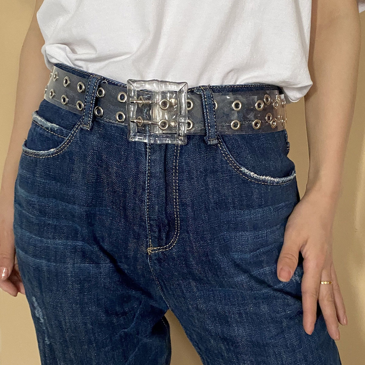 Resin Buckle Transparent Double Exhaust Eye Wide PVCFashion Ladies Belt Belt