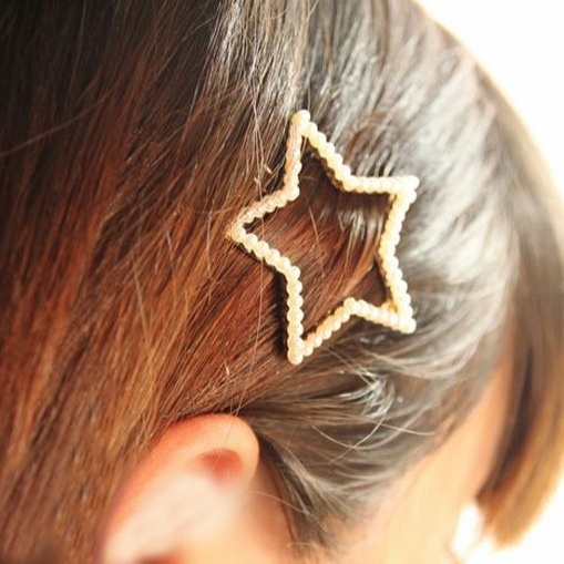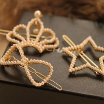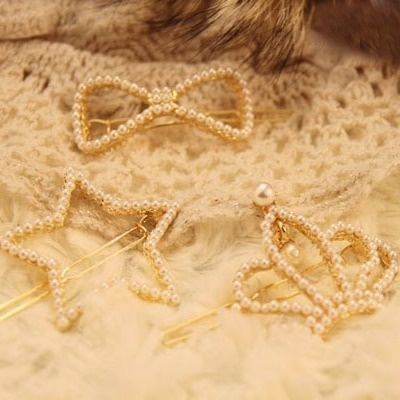 Korean Version Of Full Pearl Bow Hairpin Five-pointed Star Crown Love Edge Clip Hair Accessories Frog Clip