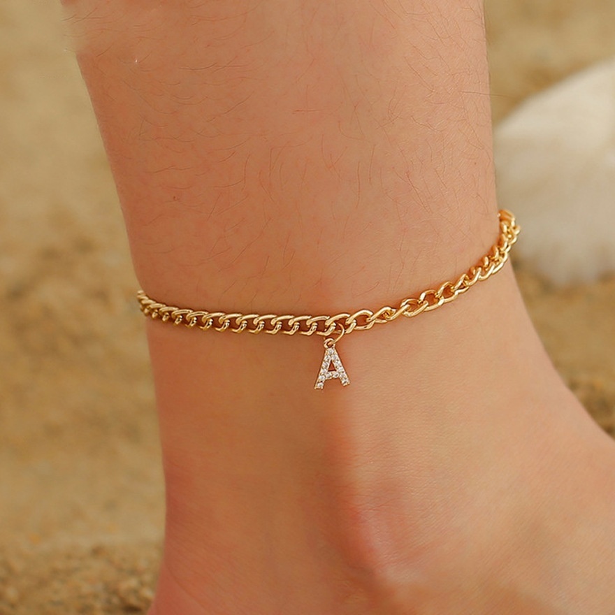 European And American26 English Letters Anklets For Women Personality Temperament Diamond Letter Anklet Punk Beach Foot Ornaments