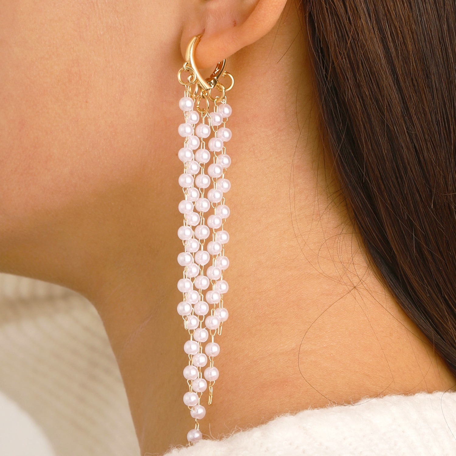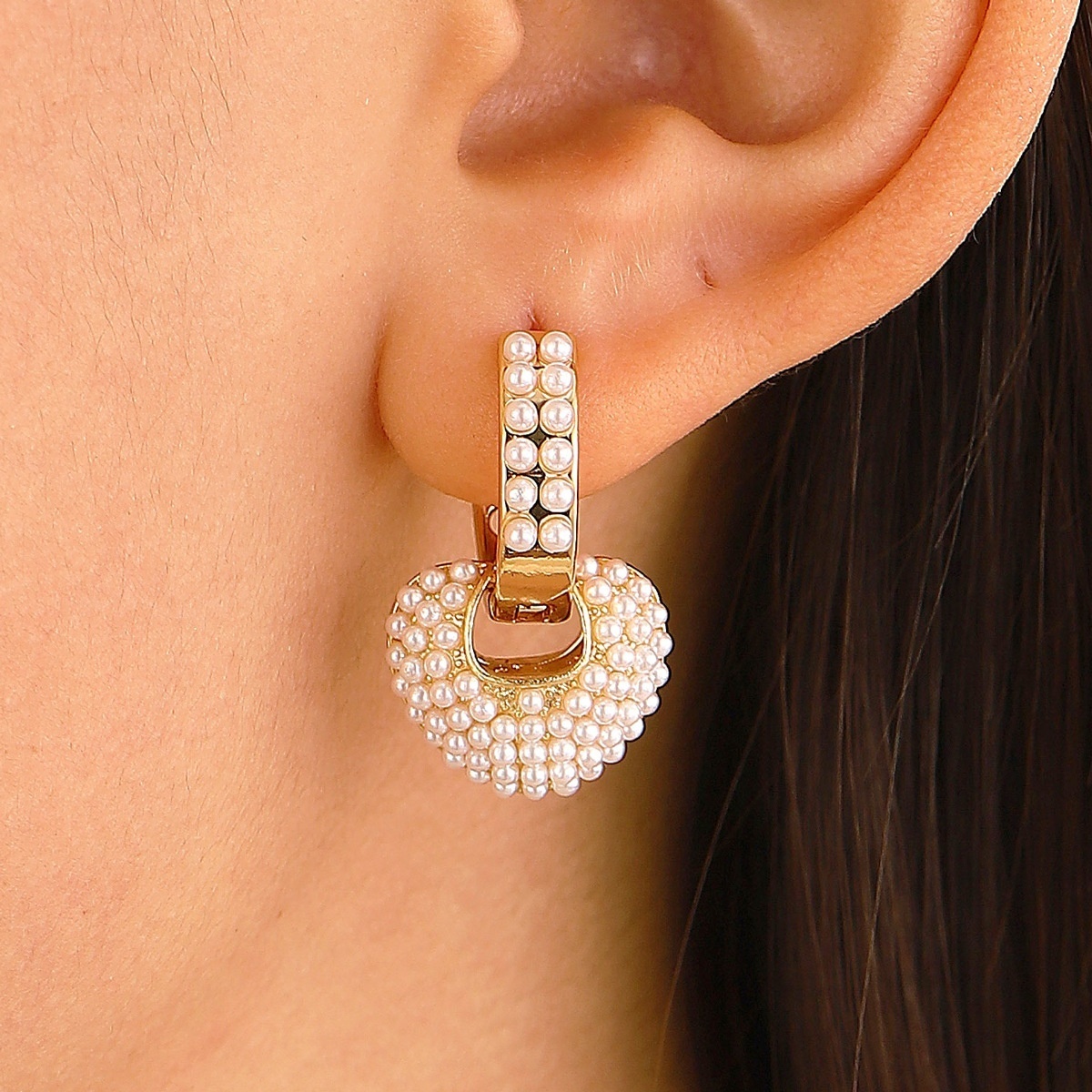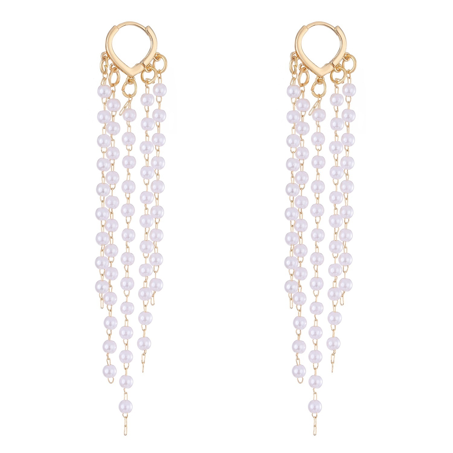 European And American Simple Pearl Heart Earrings Niche Light Luxury Forest Long Tassel Earrings Earrings