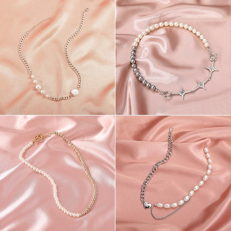 European And American Hip-hop Pearl Splicing Clavicle Chain Japanese And Korean Portrait Cross Chain Necklace Fashionable And Simple Internet Celebrity Accessories