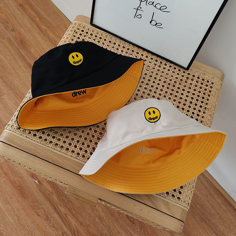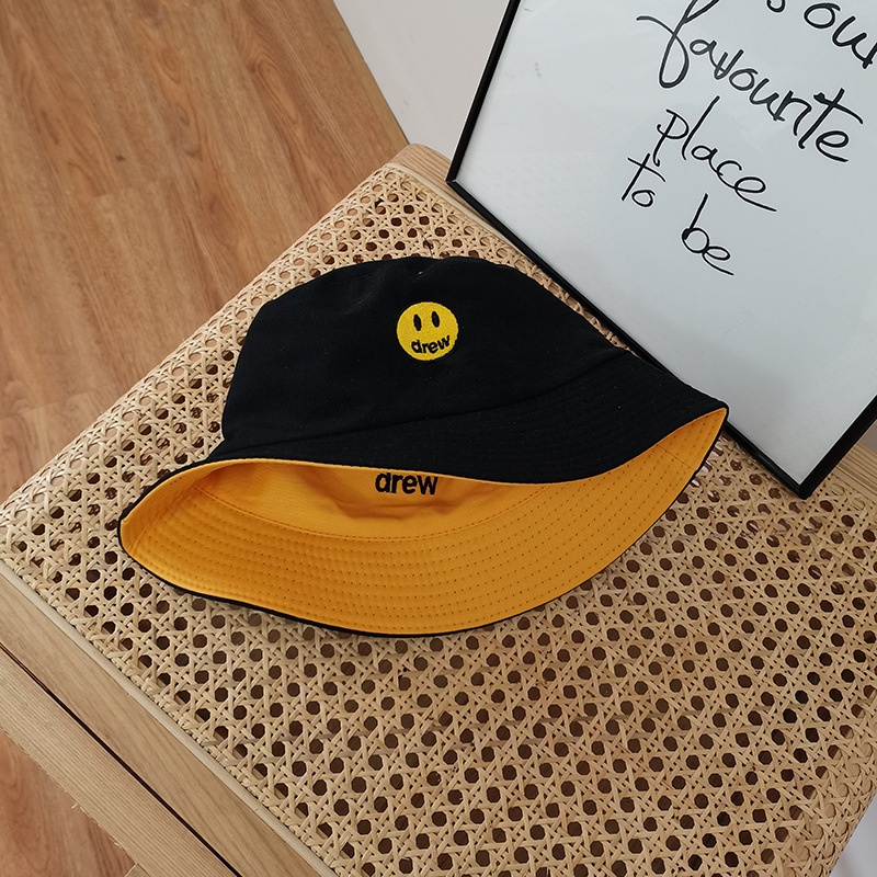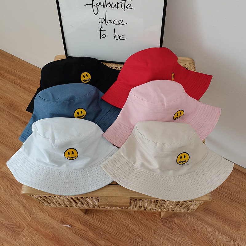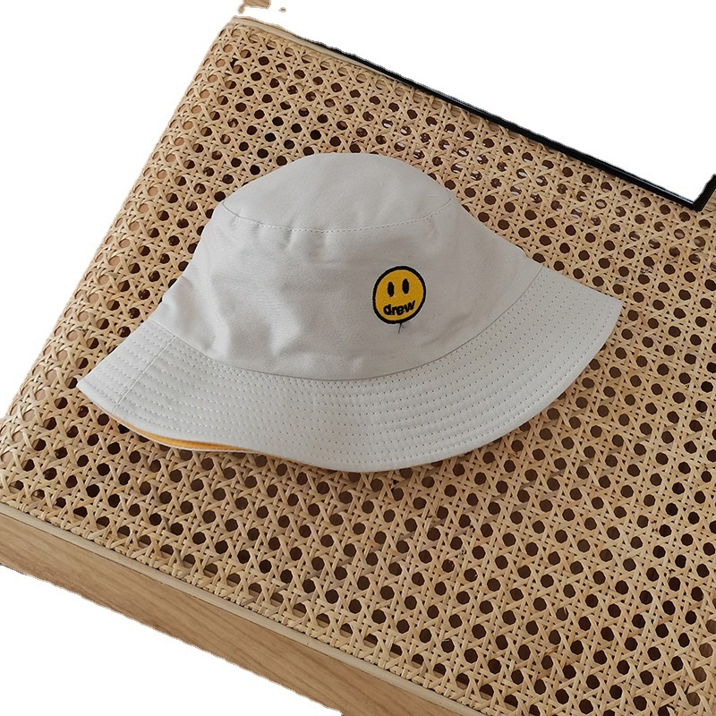 Spring And Summer Fisherman Hat Women's Double-sided Smiling Face Small Fresh Korean Version Embroidered Sun Haty Brand Sun Protection Cute Hat Thin Section