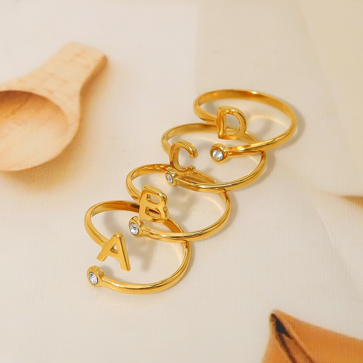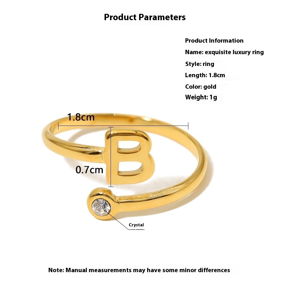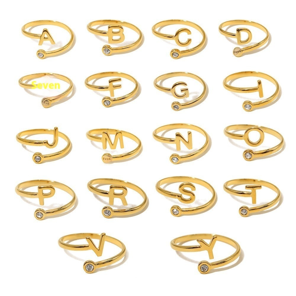 All English Alphabet Series Titanium Steel Electroplated Real Gold Open Ring For Women European And American Foreign Trade Diamond Index Finger Ring Will Not Fade