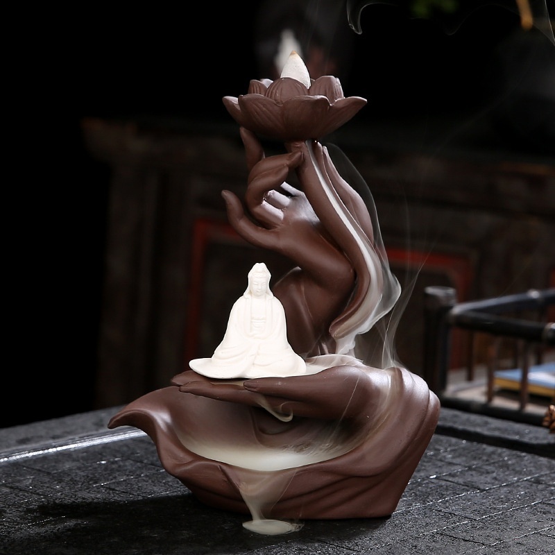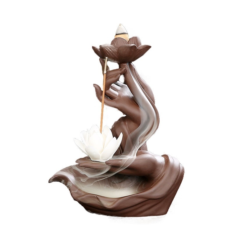 Purple Sand Backflow Incense Burner Buddha's Hand Lotus Heart Ceramic Incense Burner Home Decoration Backflow Incense Incense Burner