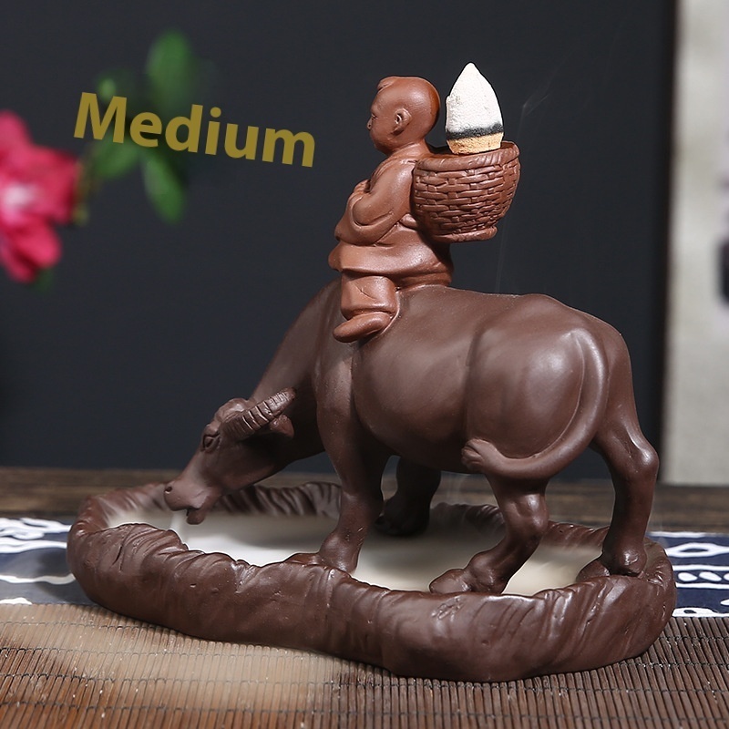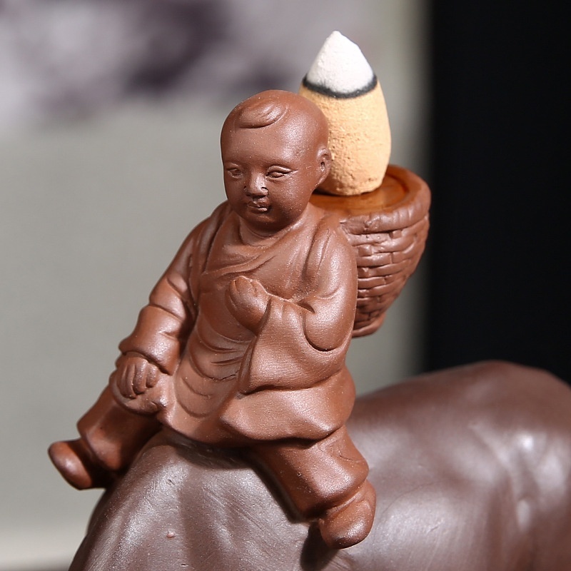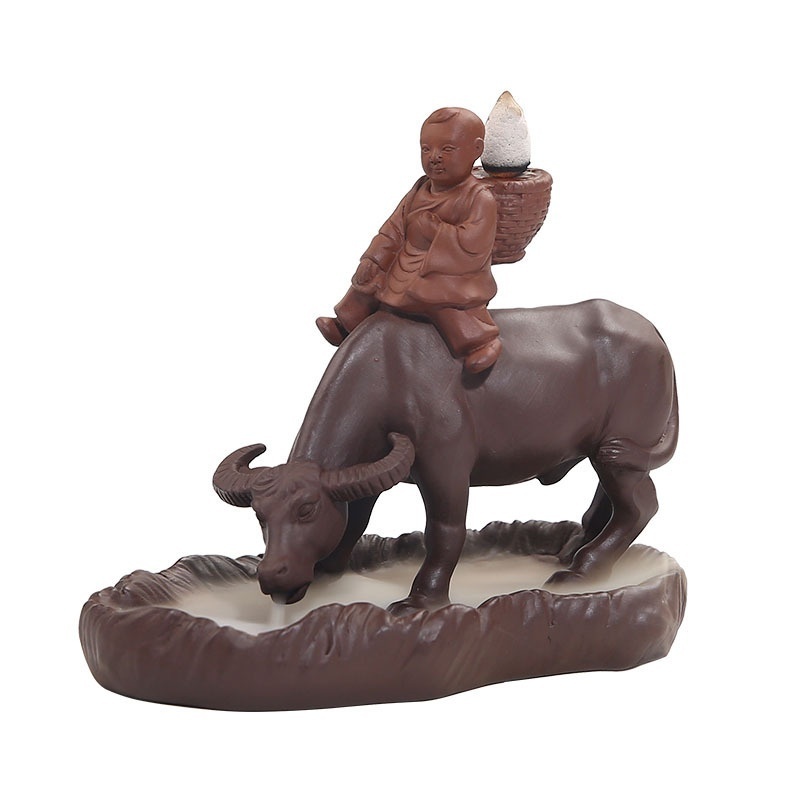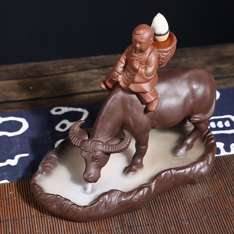 Shepherd Boy Riding ACow Purple Sand Backflow Incense Burner Ceramic Incense Burner Home Decoration Purple Sand Backflow Incense Burner