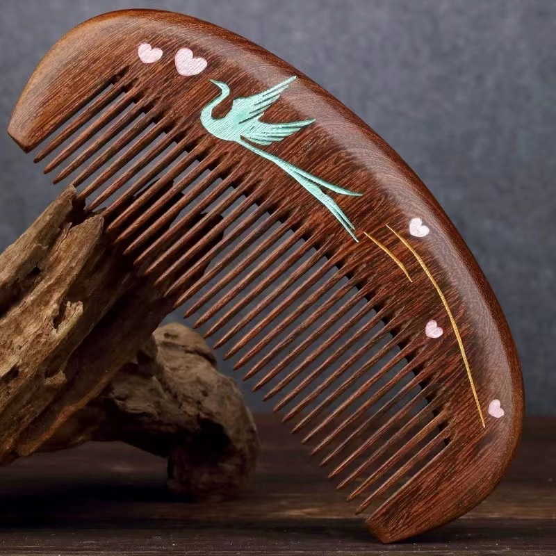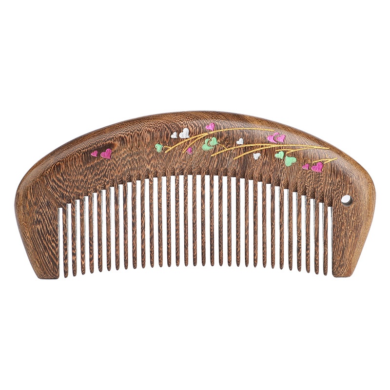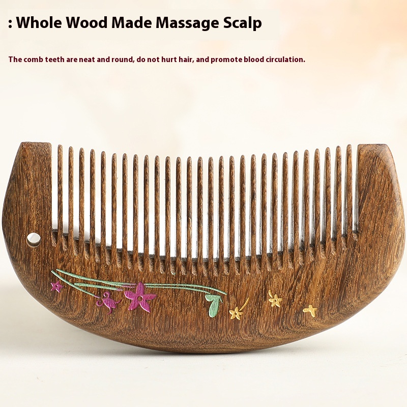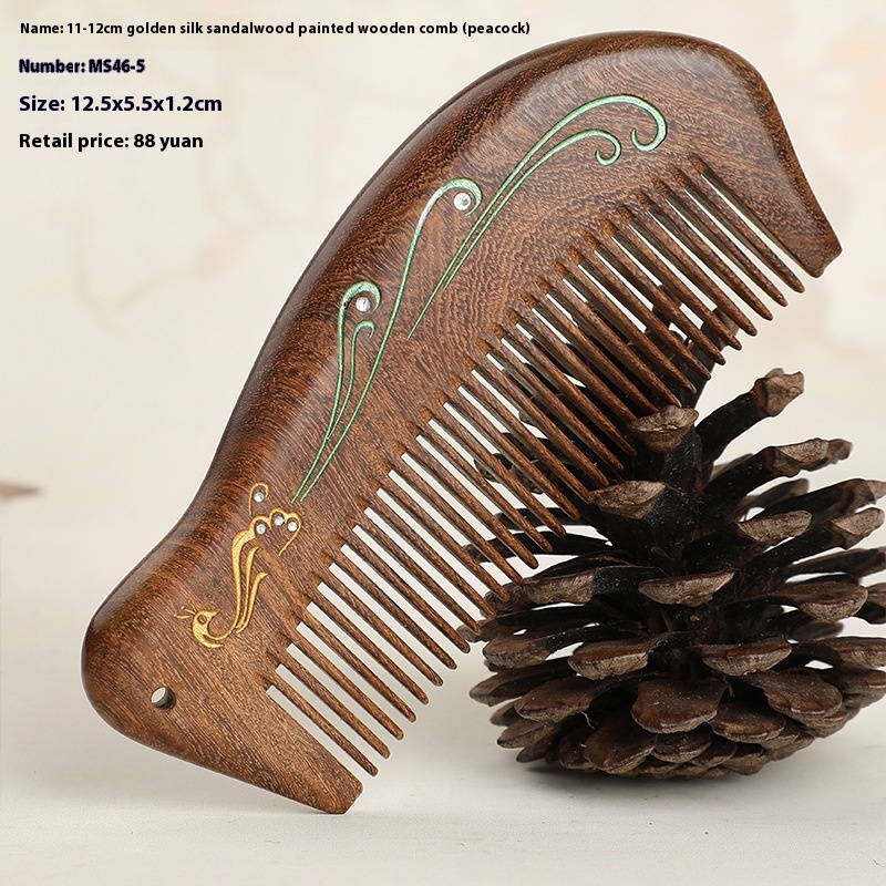 Hand-painted Comb Gold Silk Sandalwood Comb Massage Comb Home Portable Lettering Wooden Lacquer Art Comb Solid Wood