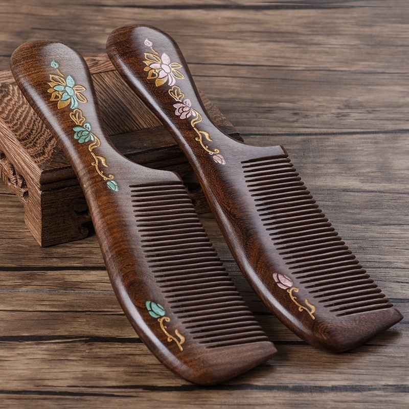 Sandalwood Comb Natural Wood Lacquer Comb Mahogany Hand-painted Comb Massage Comb Ladies Gift