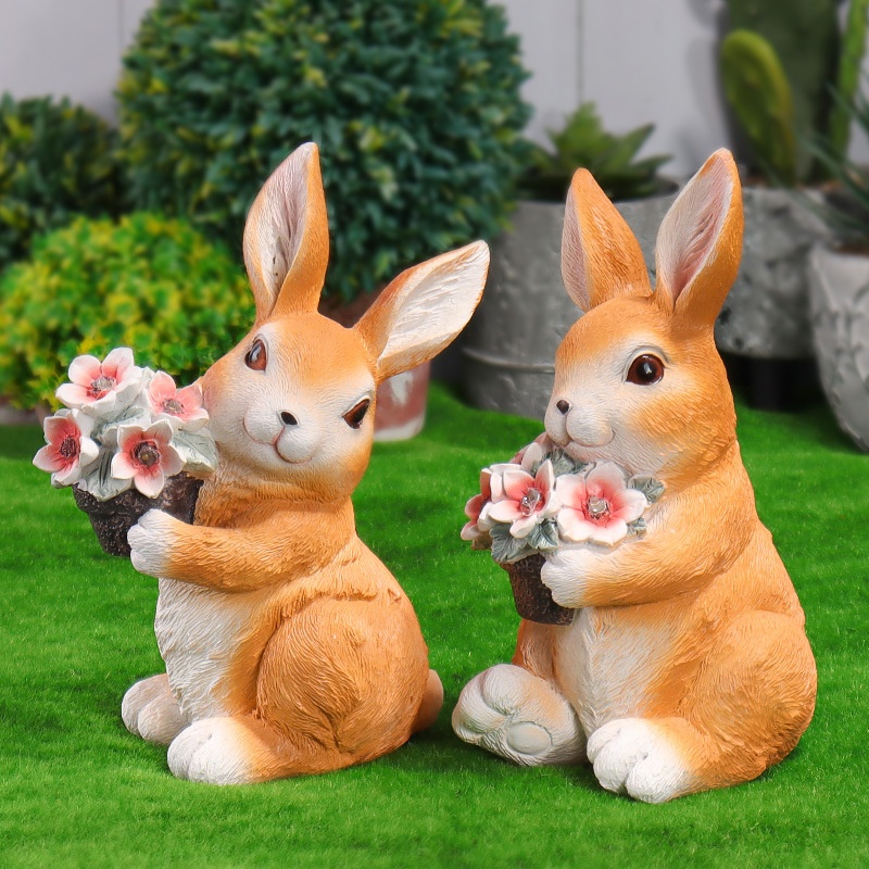 Outdoor Garden Courtyard Ornaments Solar Kitten Butterfly Rabbit Resin Crafts Garden Decorations