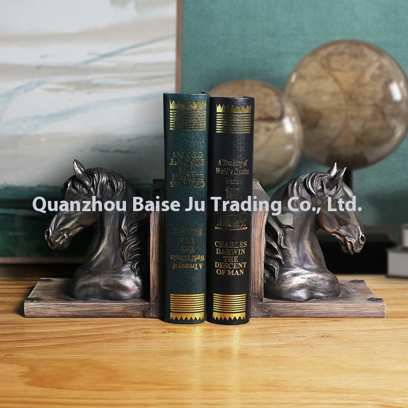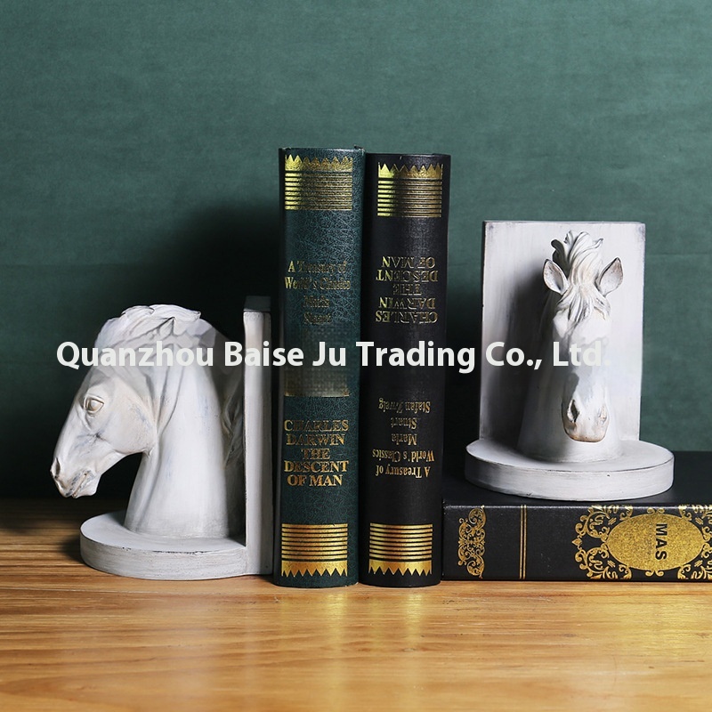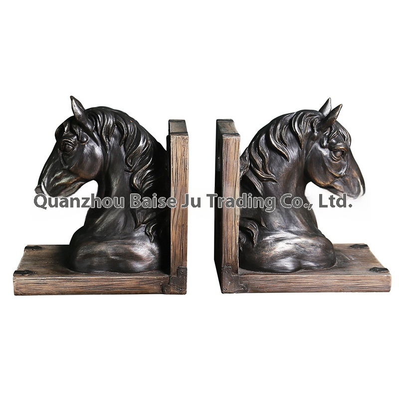 American Retro Bookends Home Office Study Ornaments Animal Horse Head Resin Book Stand Sample Room Soft Furnishings