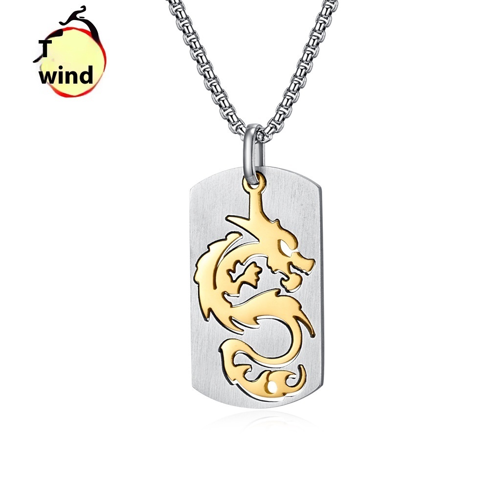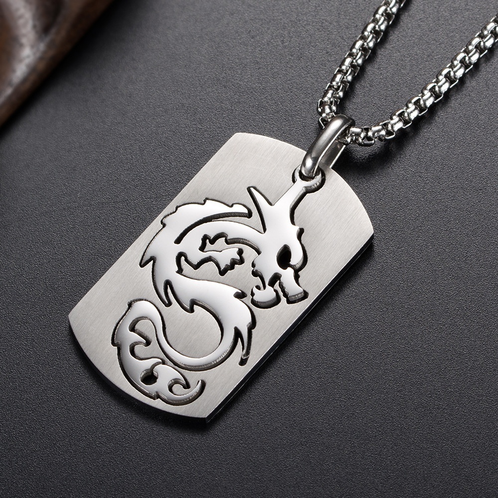 Titanium Steel Dragon Pendant Chinese Dragon Hollow Necklace Domineering Men's Retro Pendant Jewelry